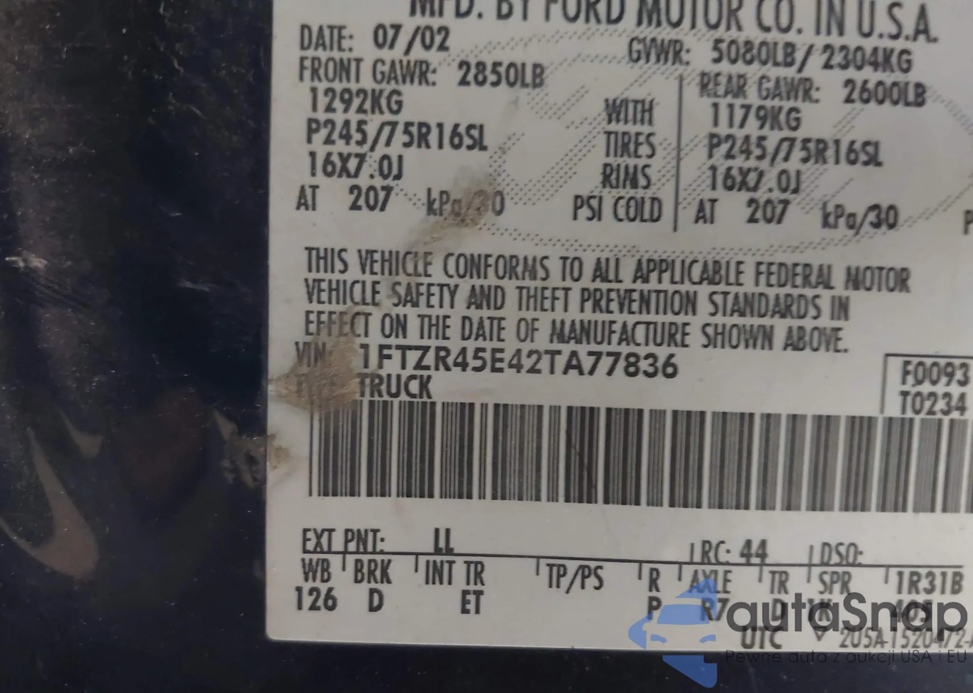 LOT: 43172451 VIN: 1FTZR45E42TA77836