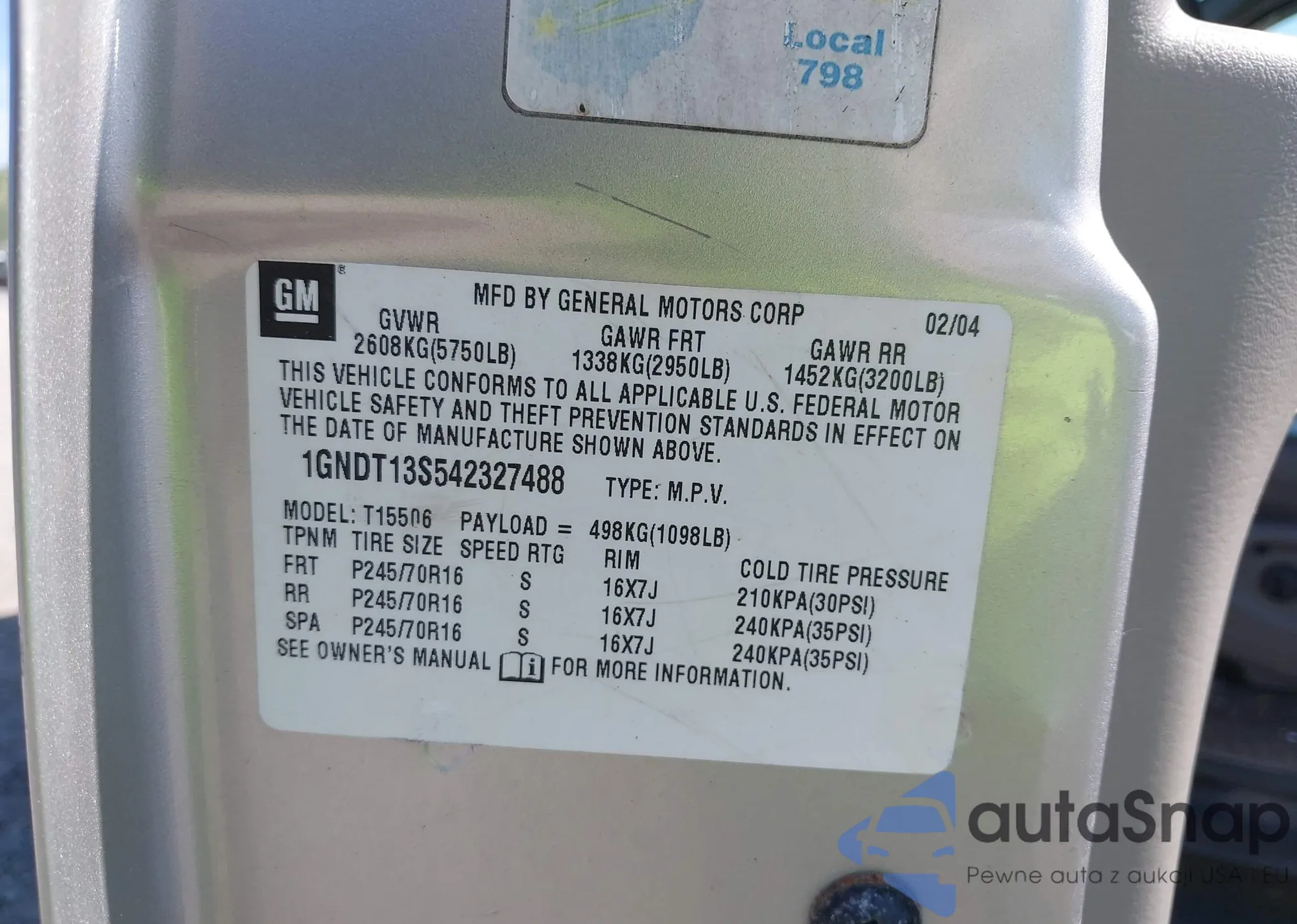 • VIN 1GNDT13S542327488