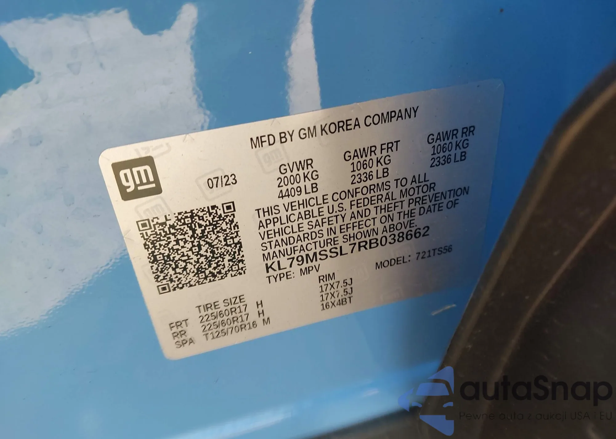 • VIN KL79MSSL7RB038662