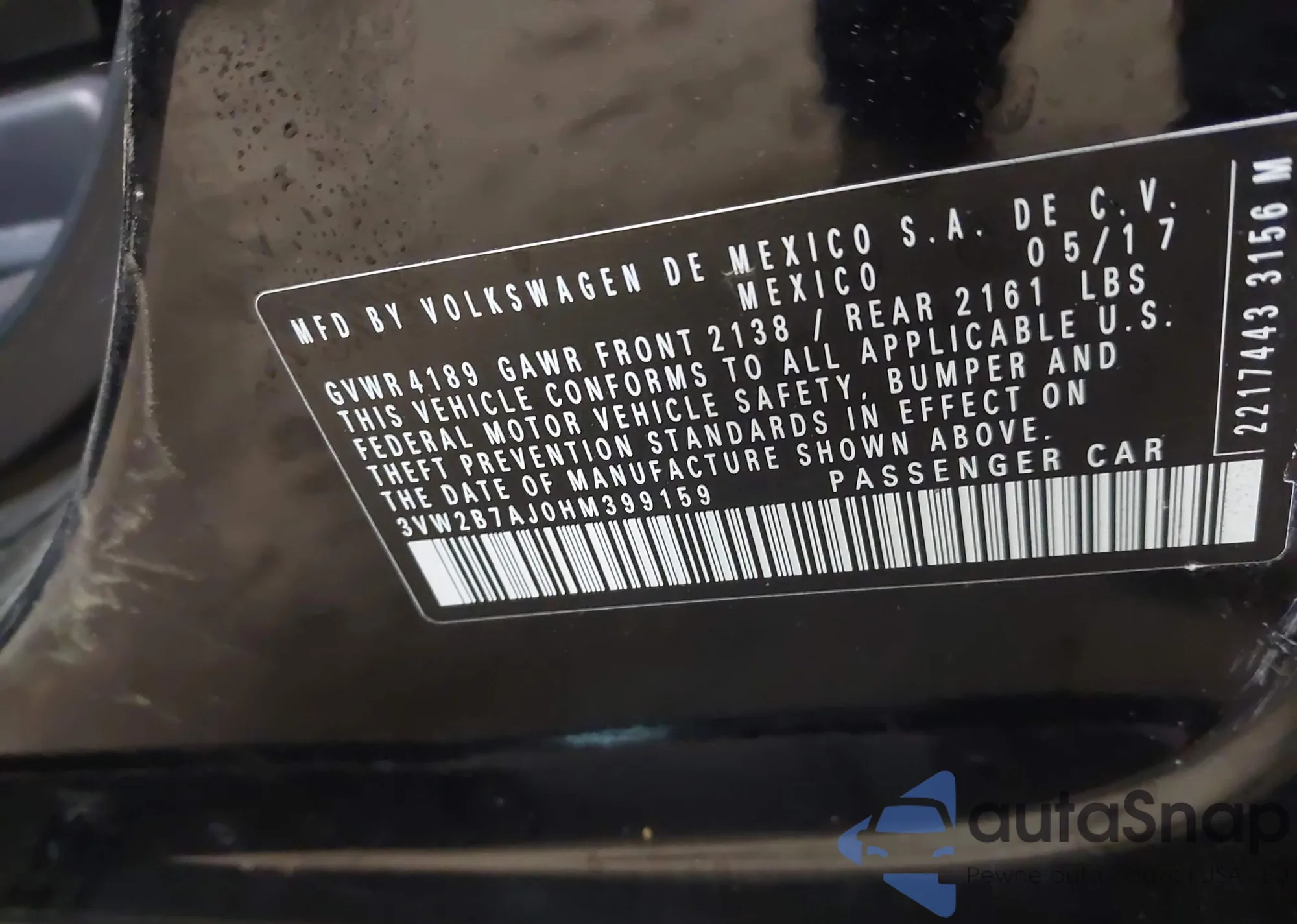 • VIN 3VW2B7AJ0HM399159