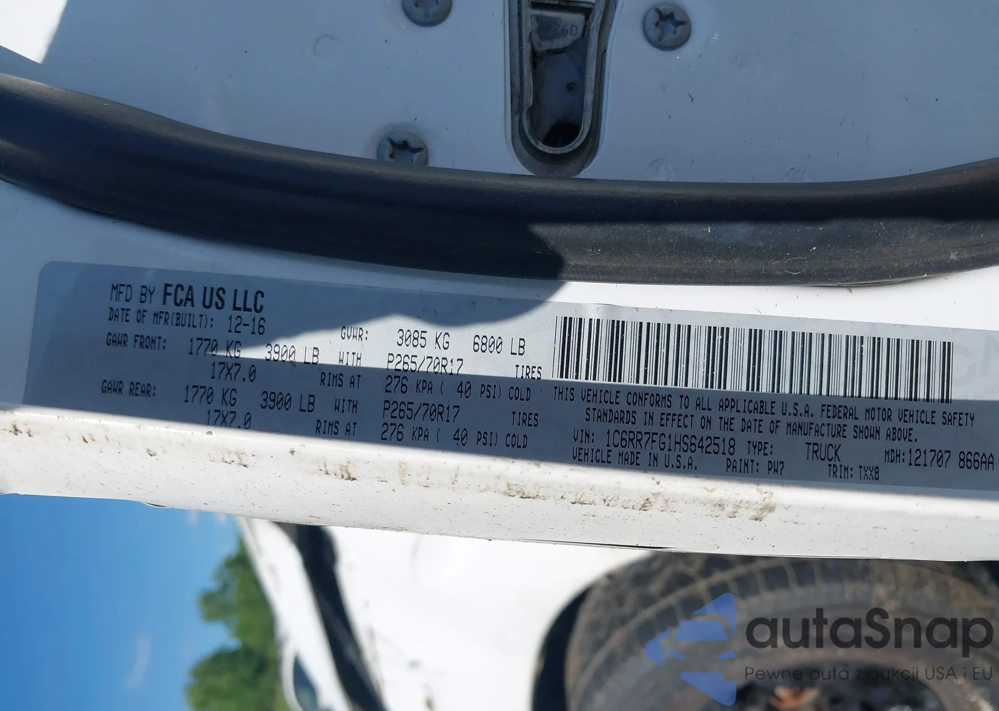 LOT: 42770265 VIN: 1C6RR7FG1HS642518