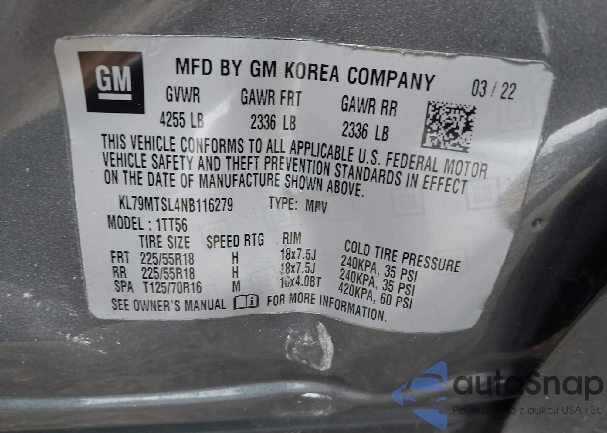 • VIN KL79MTSL4NB116279