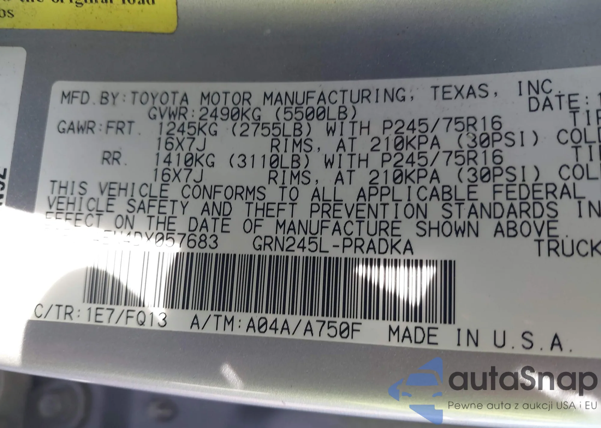 • VIN 5TFLU4EN4DX057683