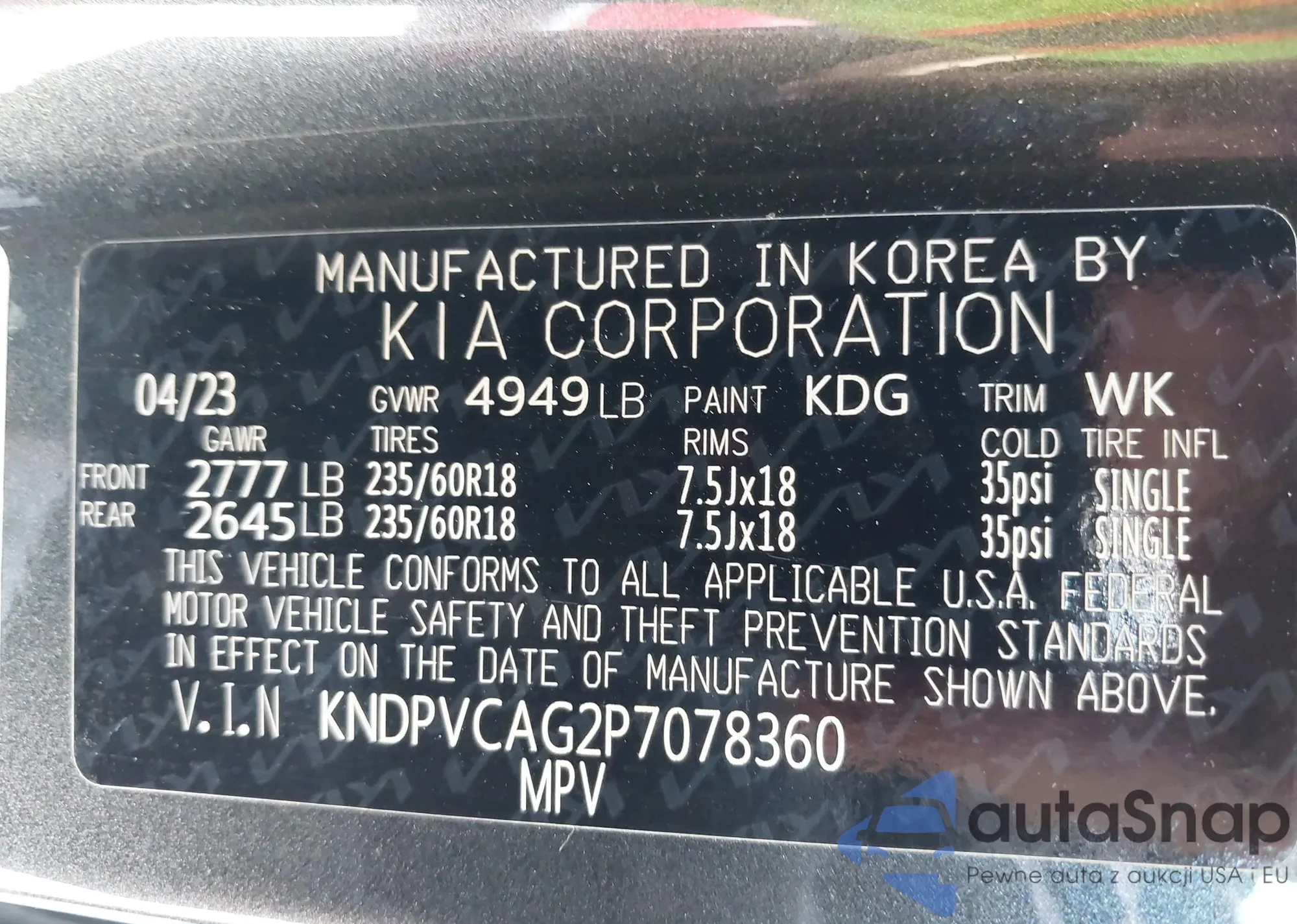 • VIN KNDPVCAG2P7078360