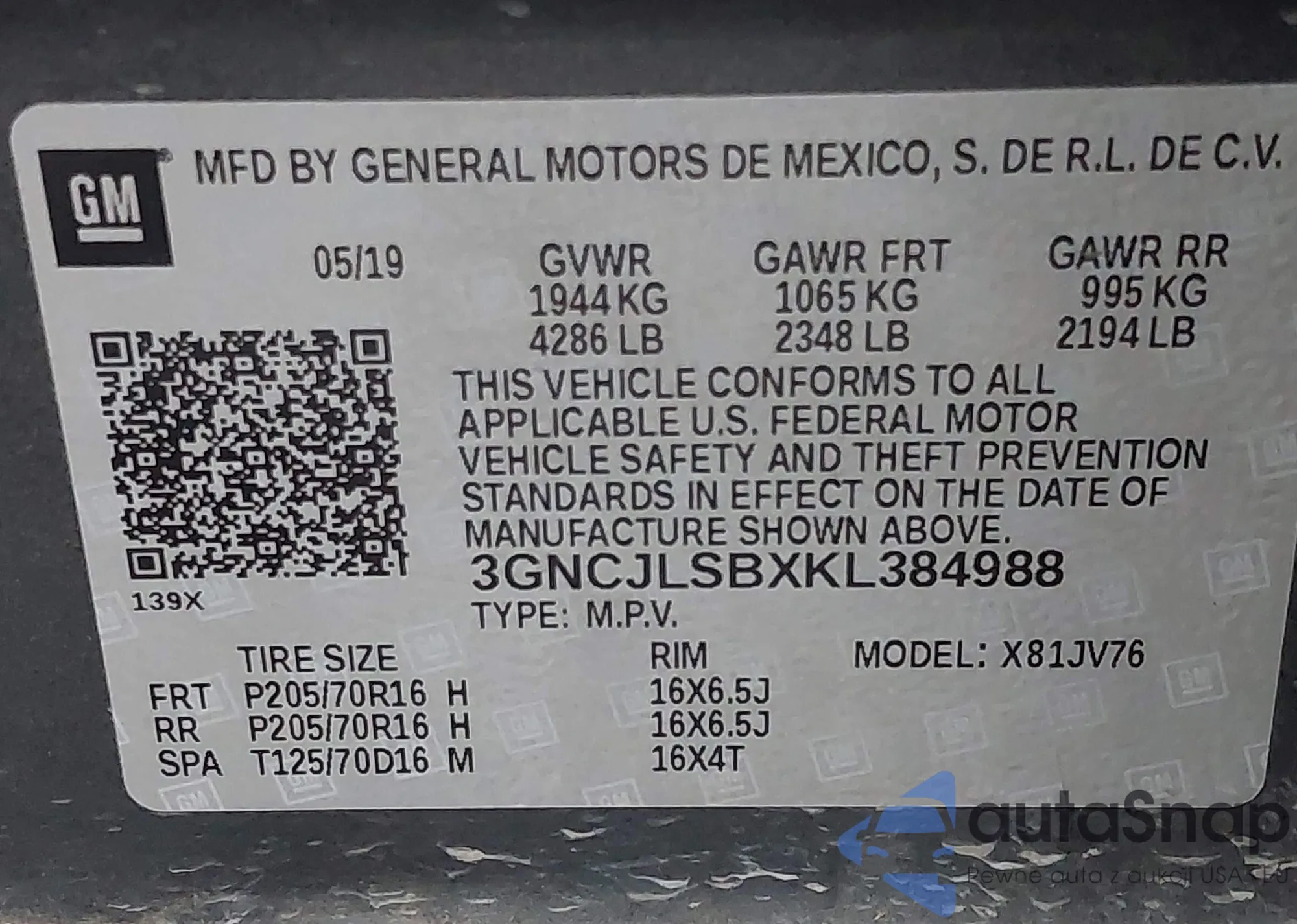 • VIN JN8AT2MV6KW394119