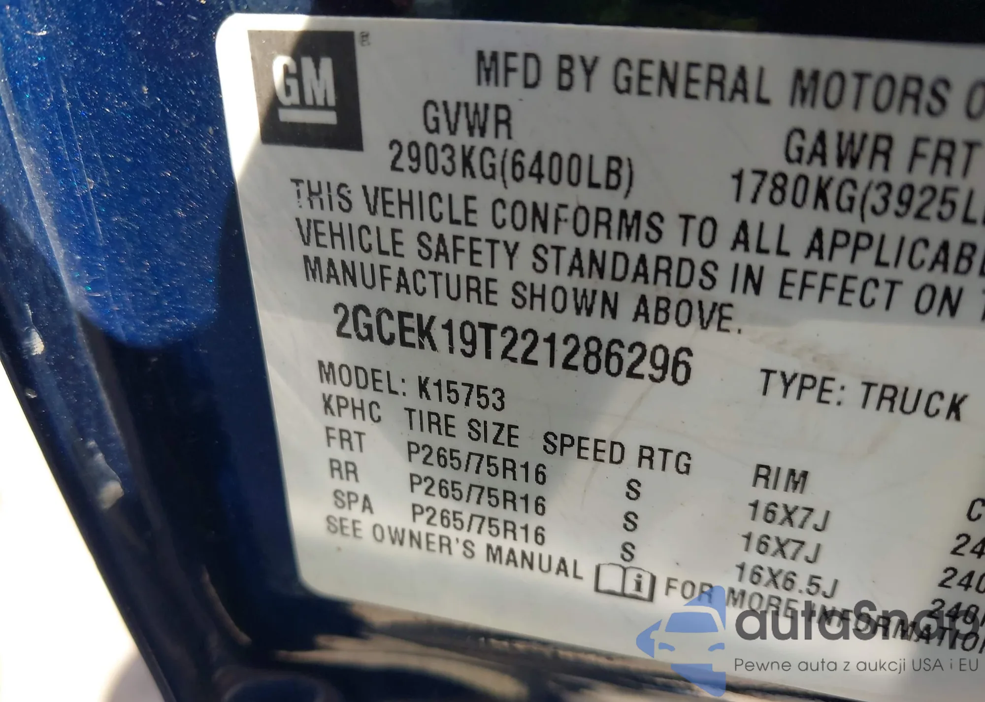 LOT: 43097158 VIN: 2GCEK19T221286296