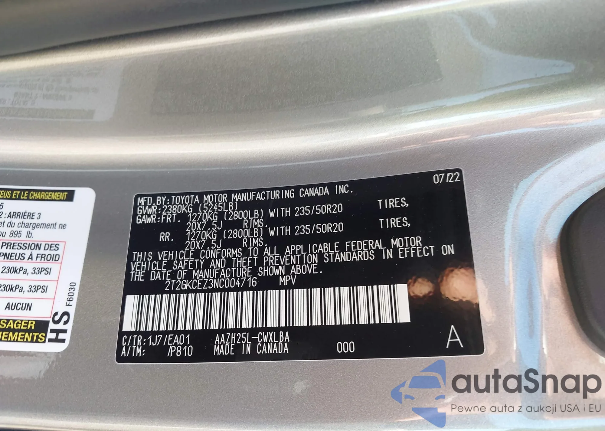 • VIN 2T2GKCEZ3NC004716