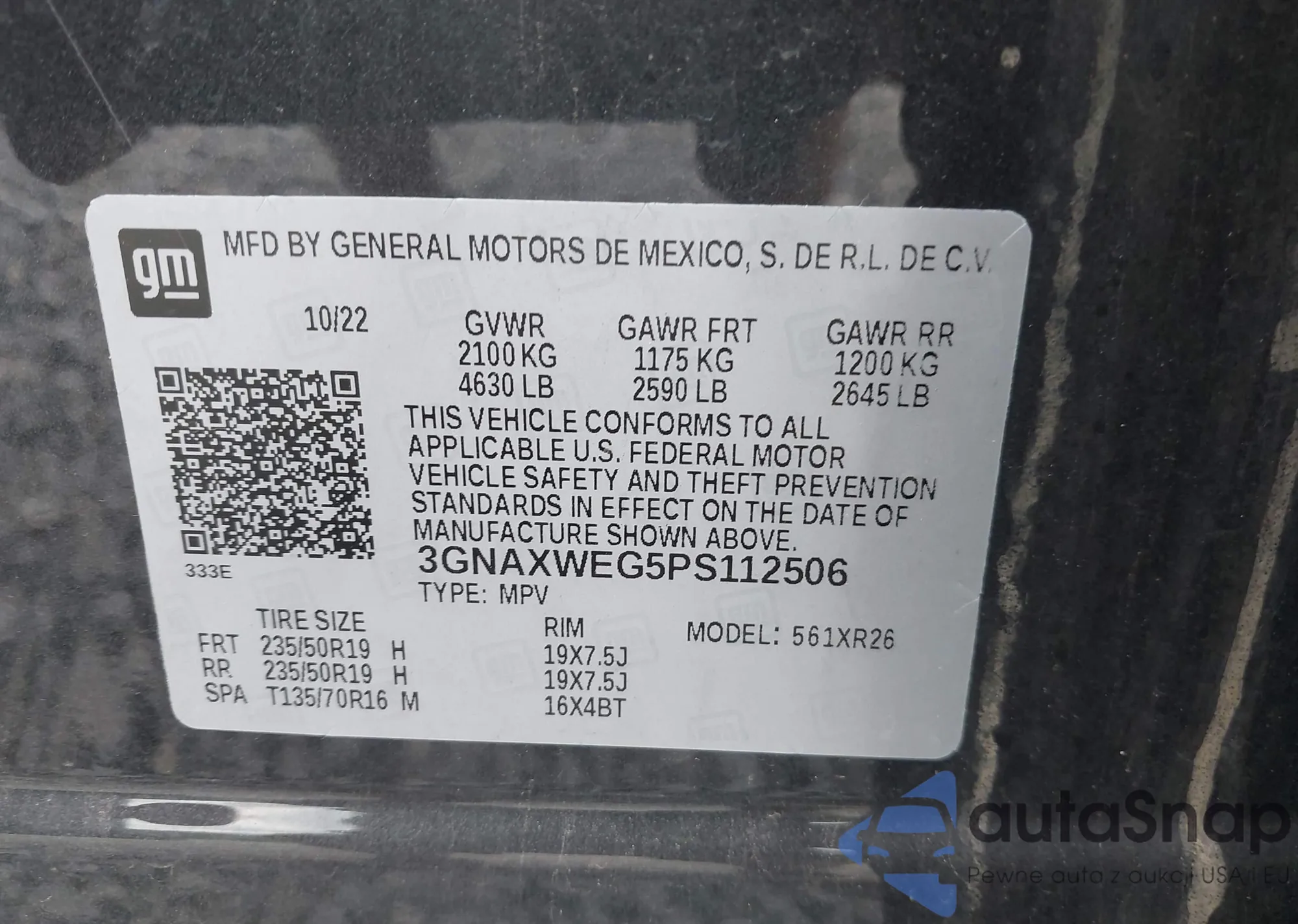 • VIN 3GNAXWEG5PS112506
