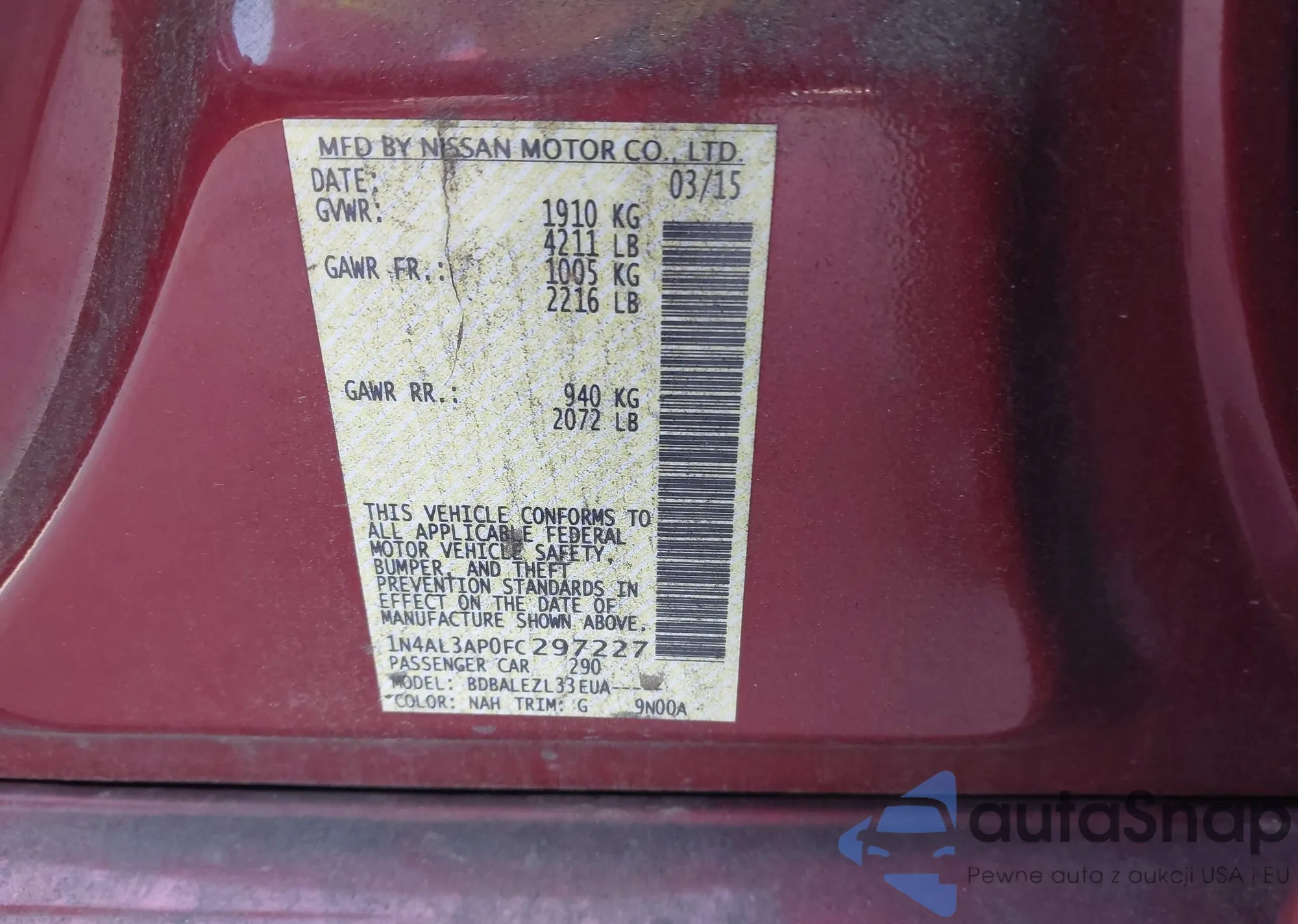 LOT: 43243434 VIN: 1N4AL3AP0FC297227