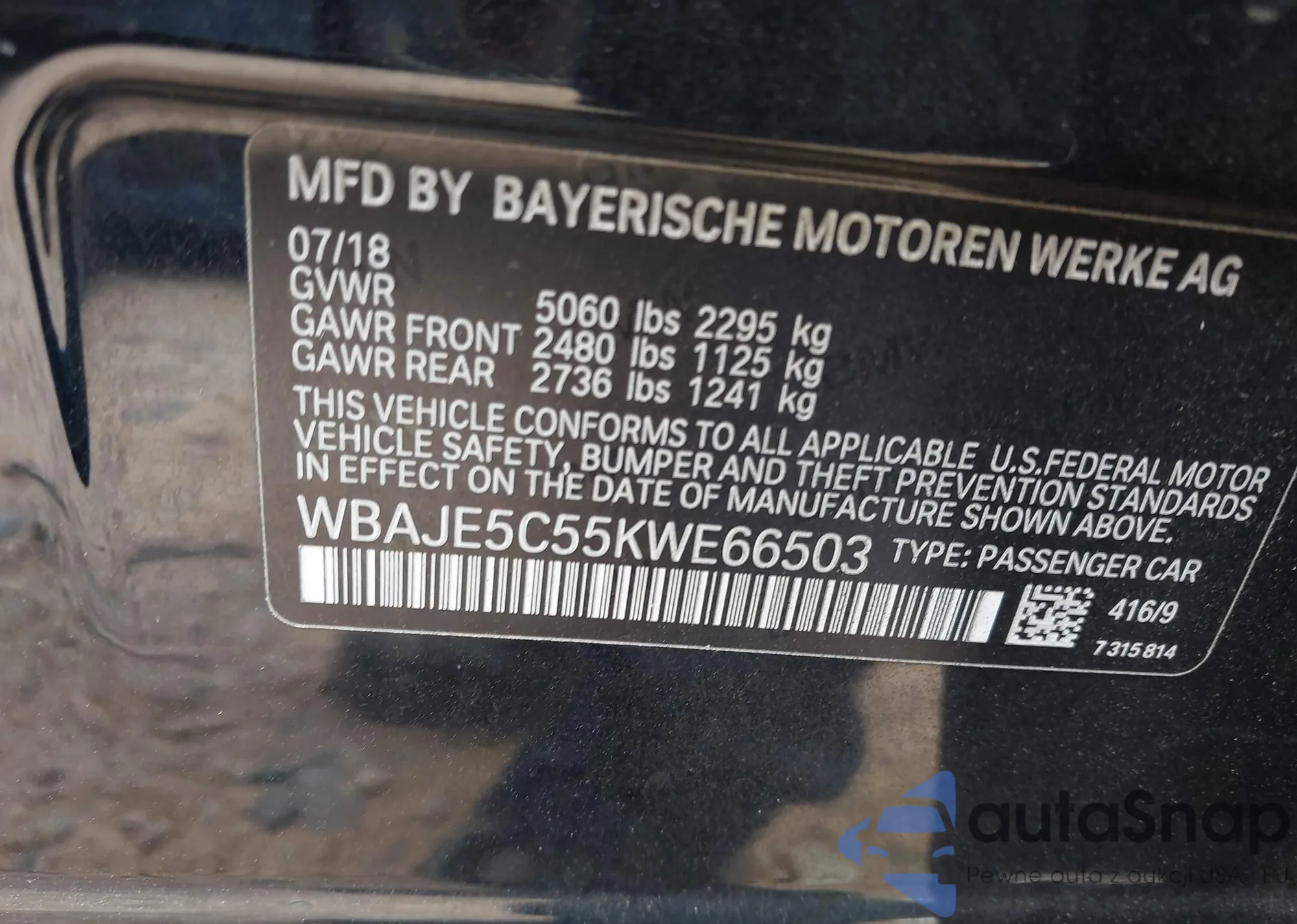 LOT: 42981002 VIN: WBAJV6C54JBK07929
