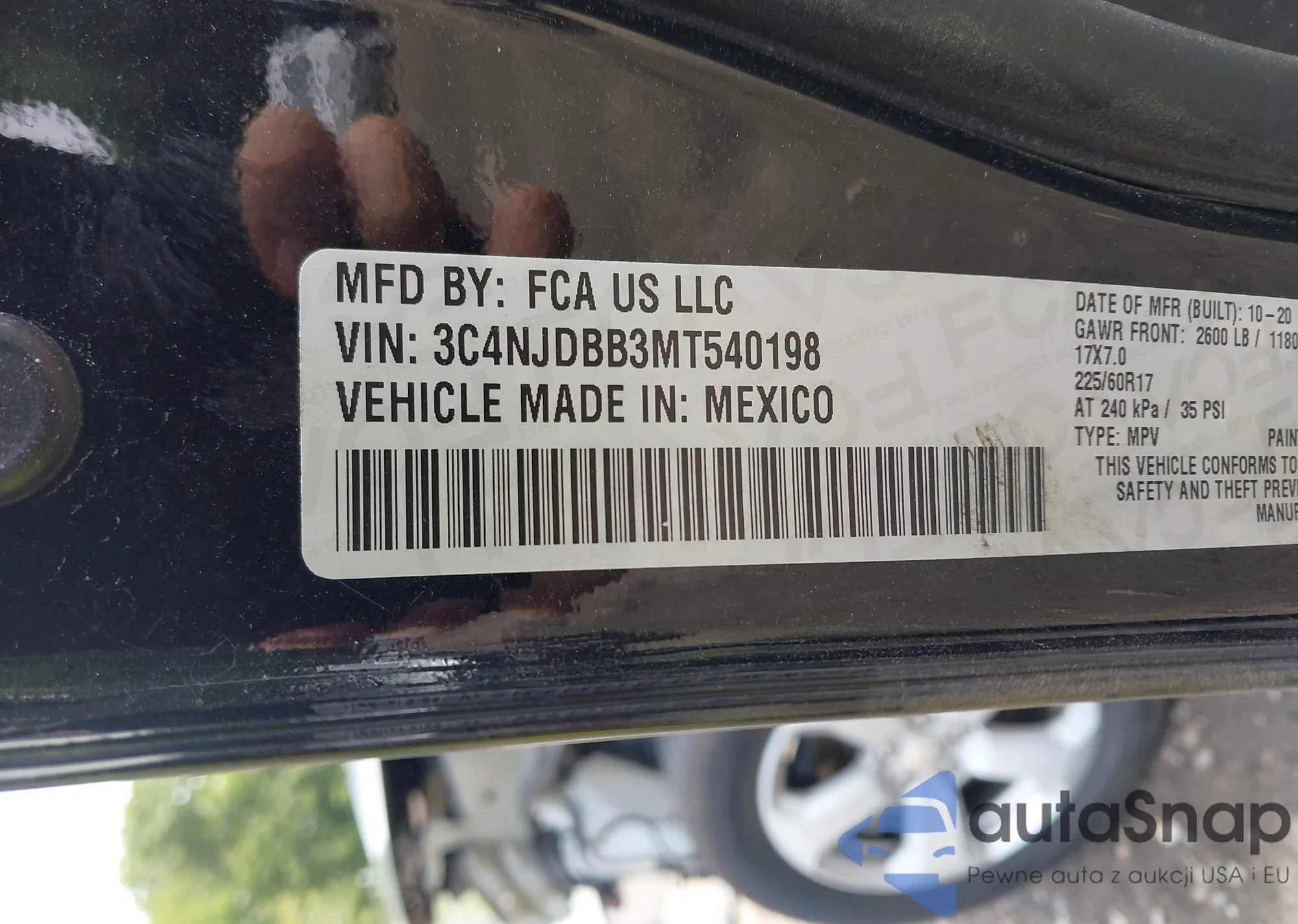 • VIN 3C4NJDBB3MT540198