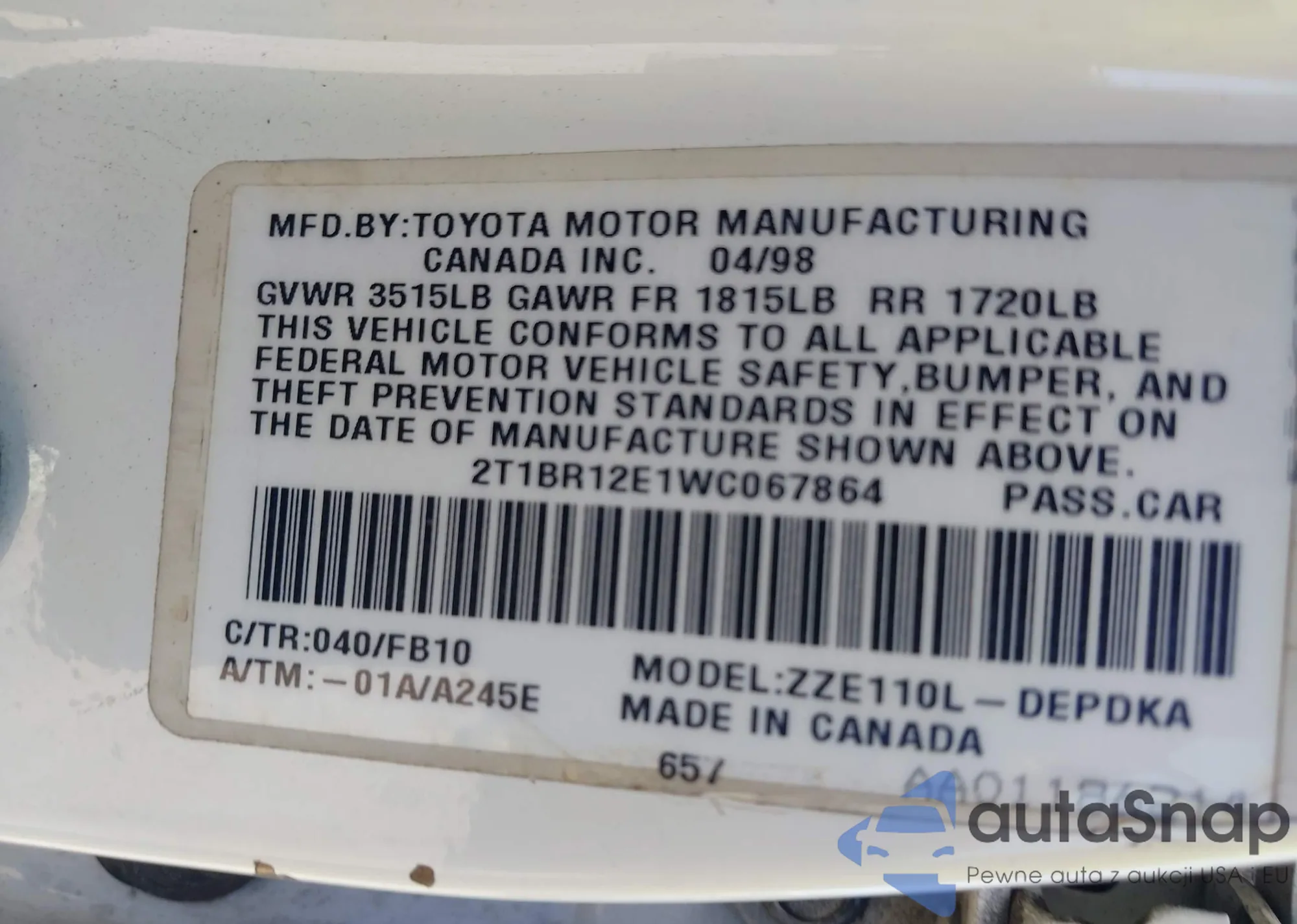 LOT: 42924397 VIN: 5J8TB18279A008186