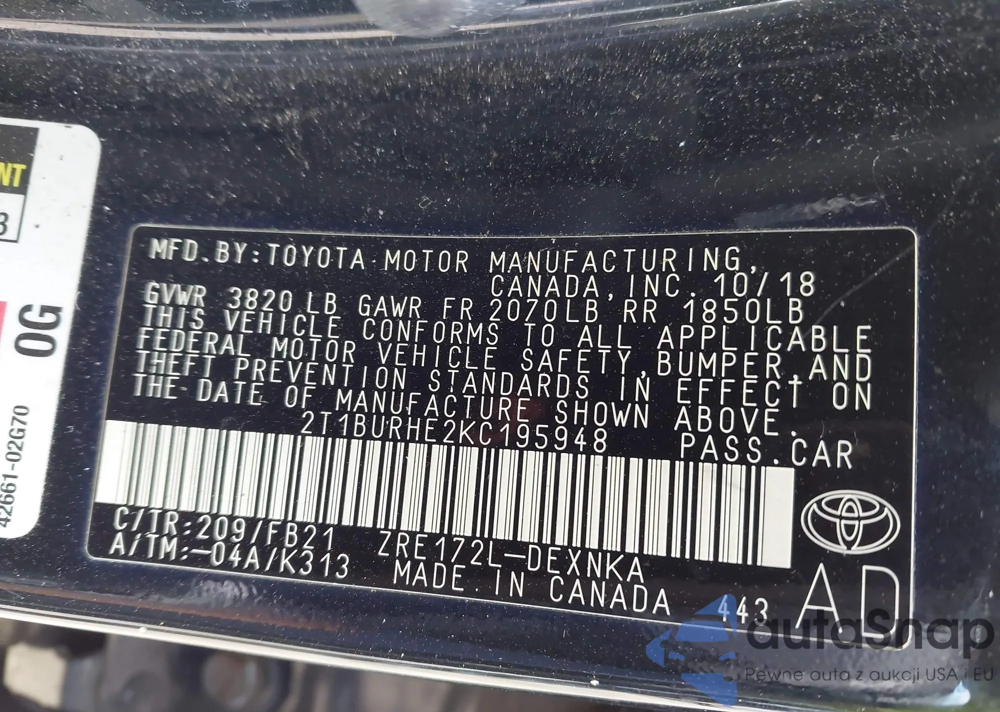 LOT: 43044441 VIN: JHLRE48387C102141