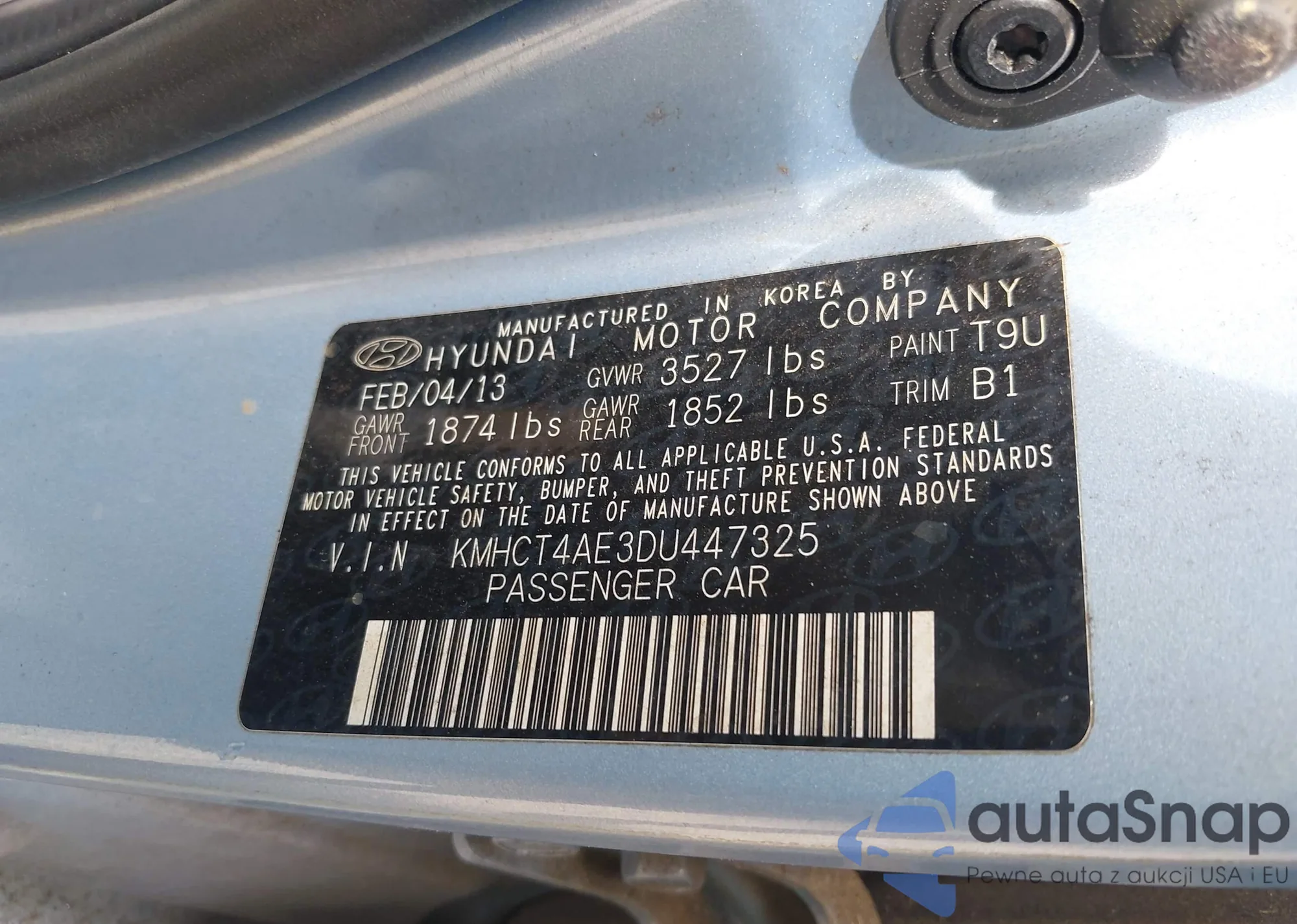 • VIN KMHCT4AE3DU447325