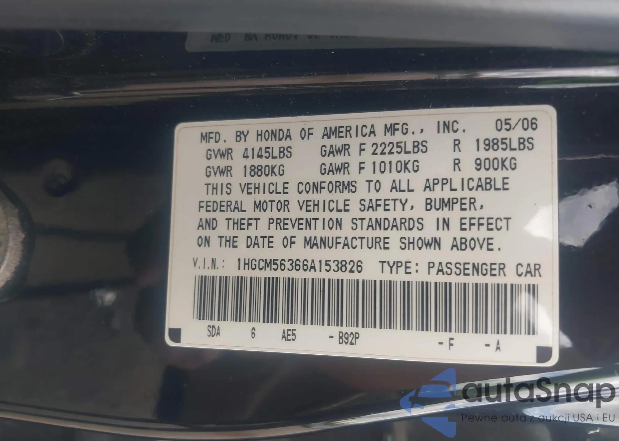 LOT: 43052485 VIN: 1HGCM56353A038906