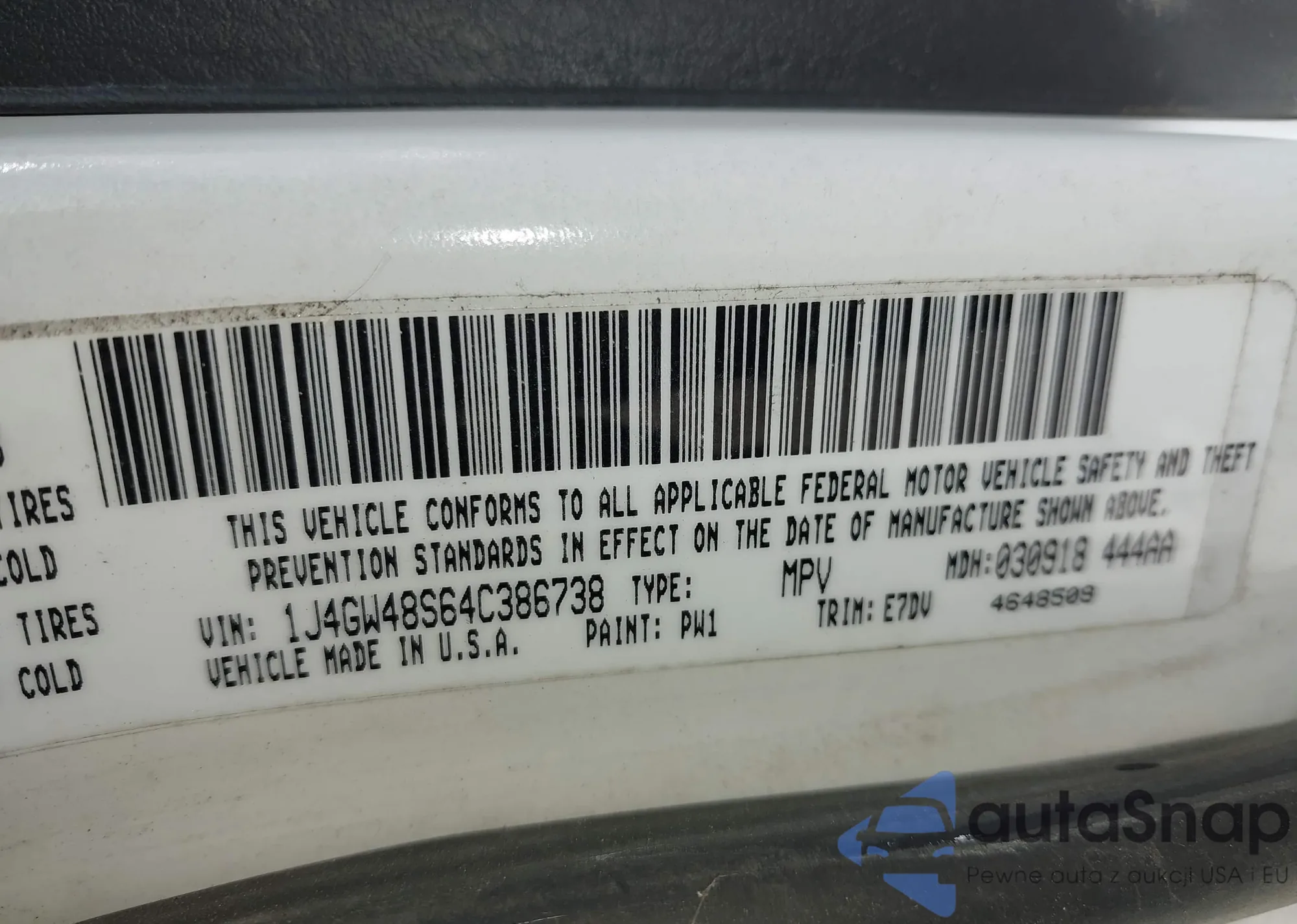 LOT: 43168778 VIN: 1J4GW48S64C386738