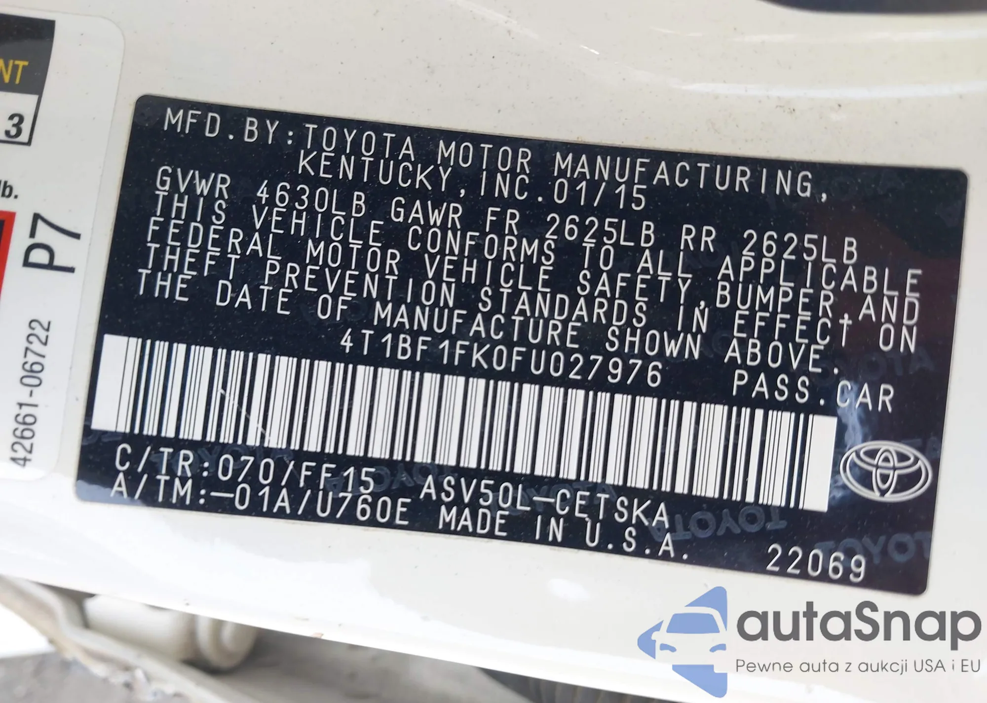 • VIN 4T1BF1FK0FU027976
