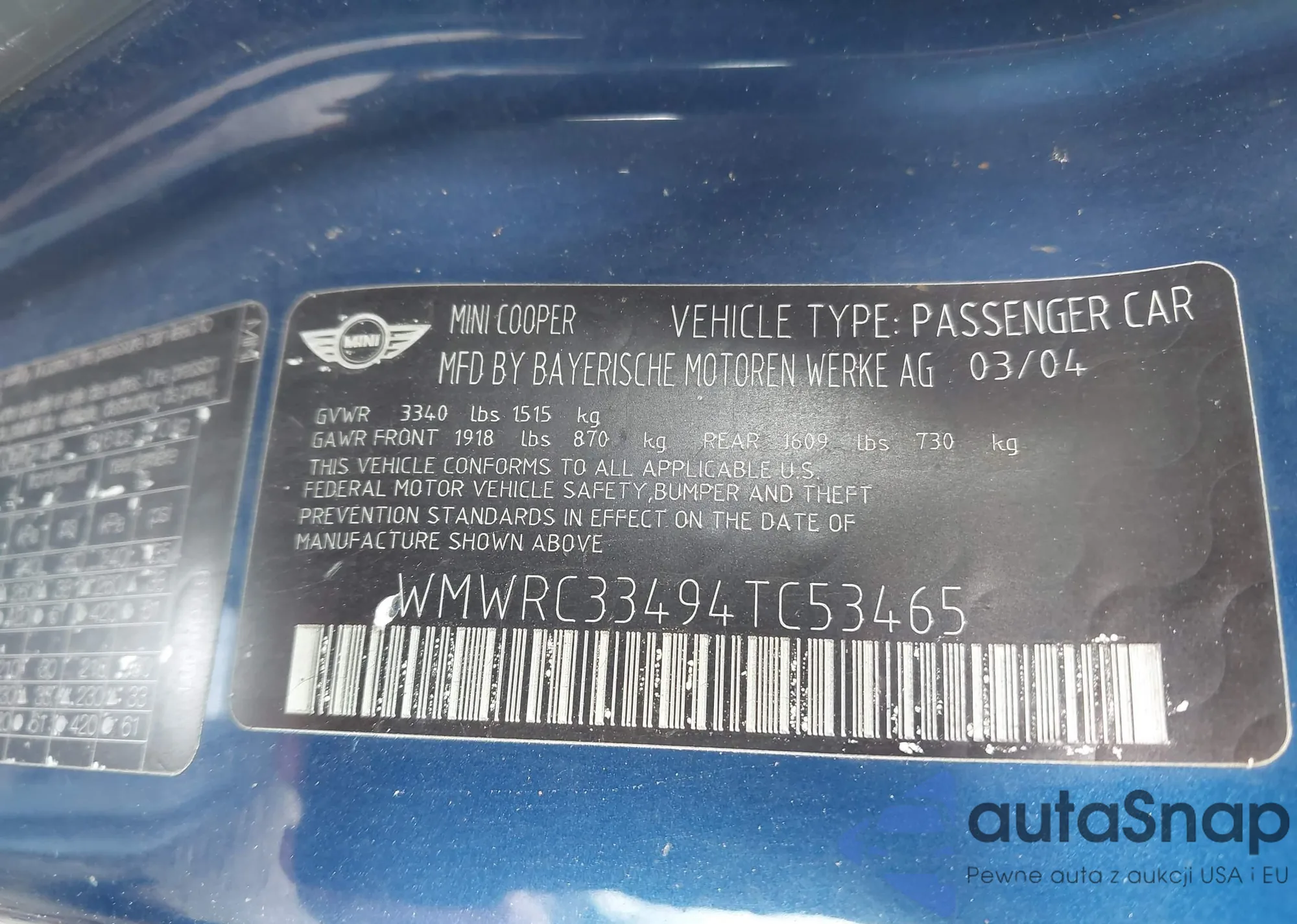 • VIN WMWRC33494TC53465