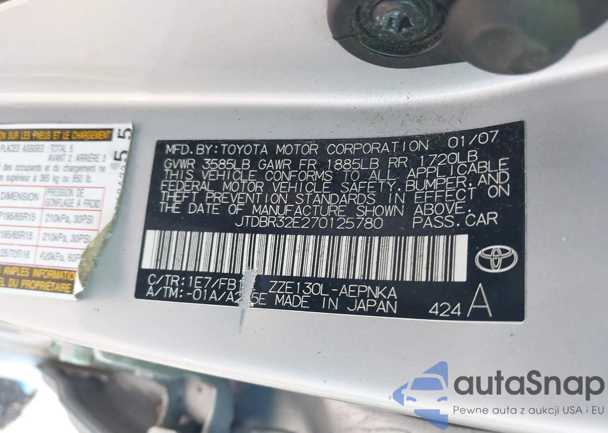 LOT: 43148354 VIN: JTDBR32E270125780