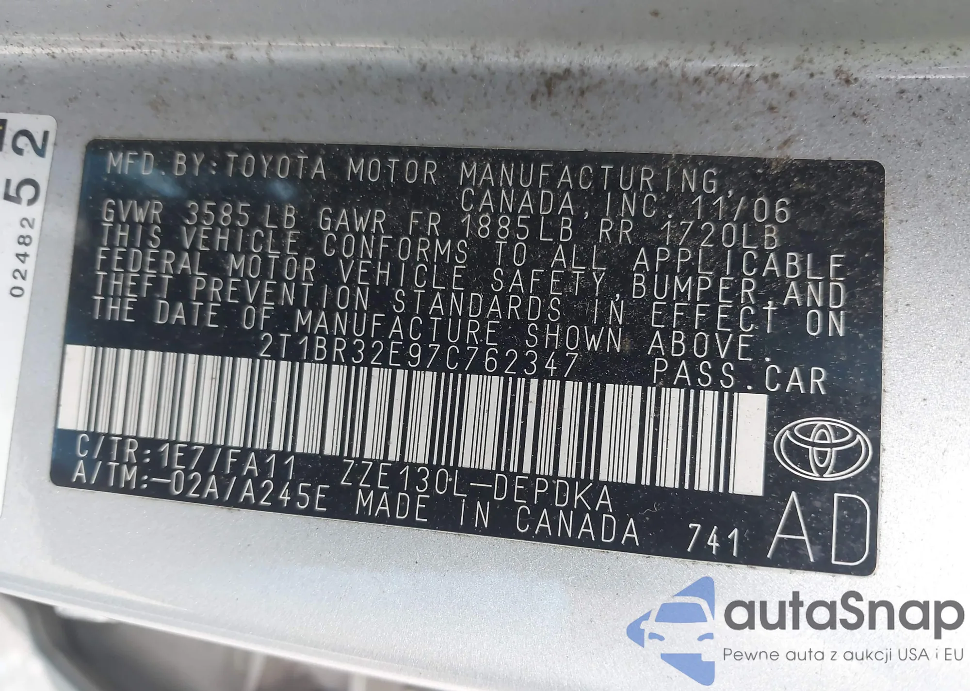 • VIN 2T1BR32E97C762347