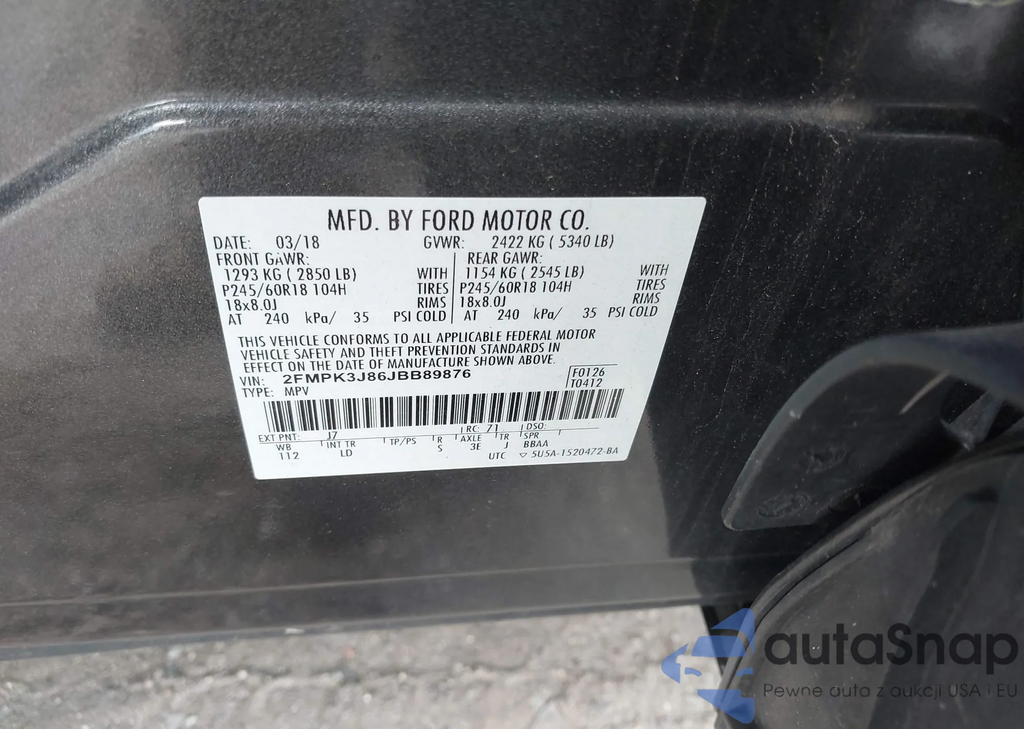 • VIN 1FMCU9GX4EUB92267