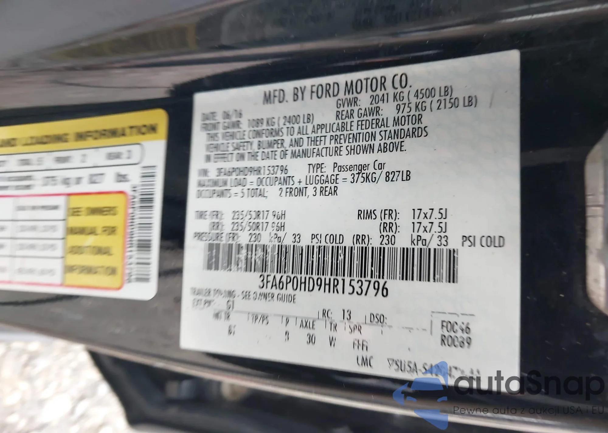 • VIN 5FRYD3H65FB011005