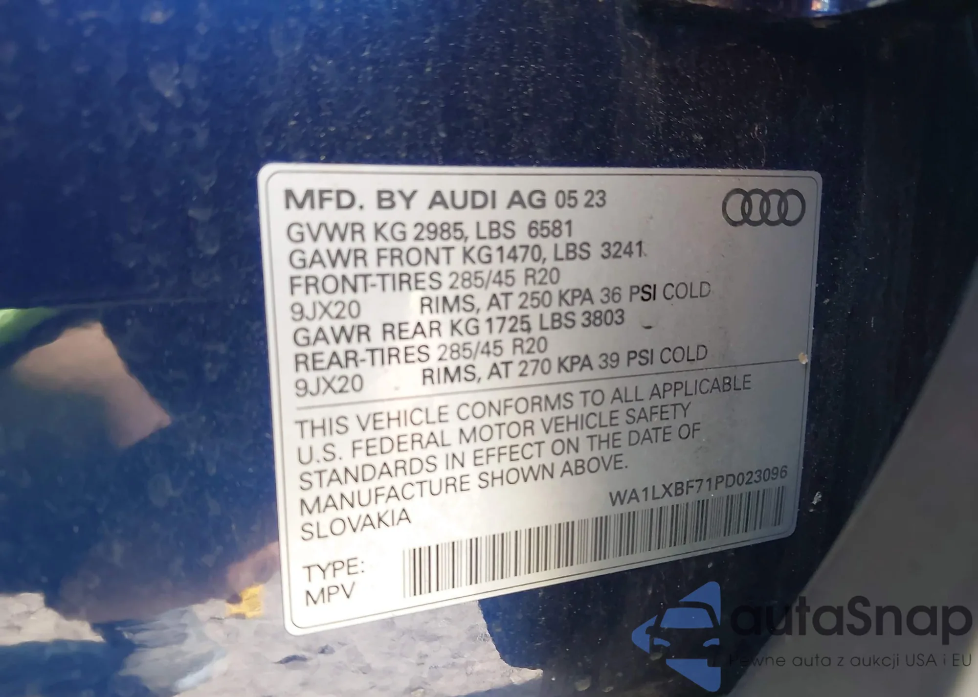 • VIN WA1LXBF71PD023096