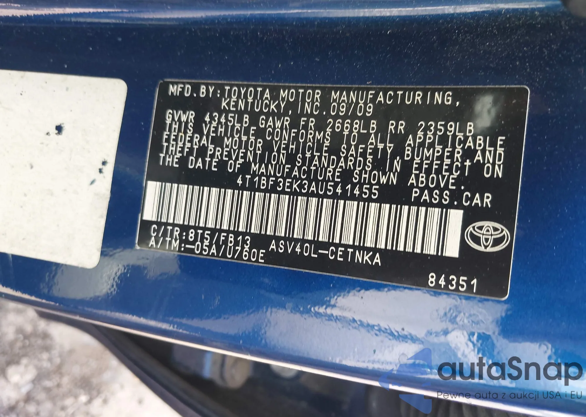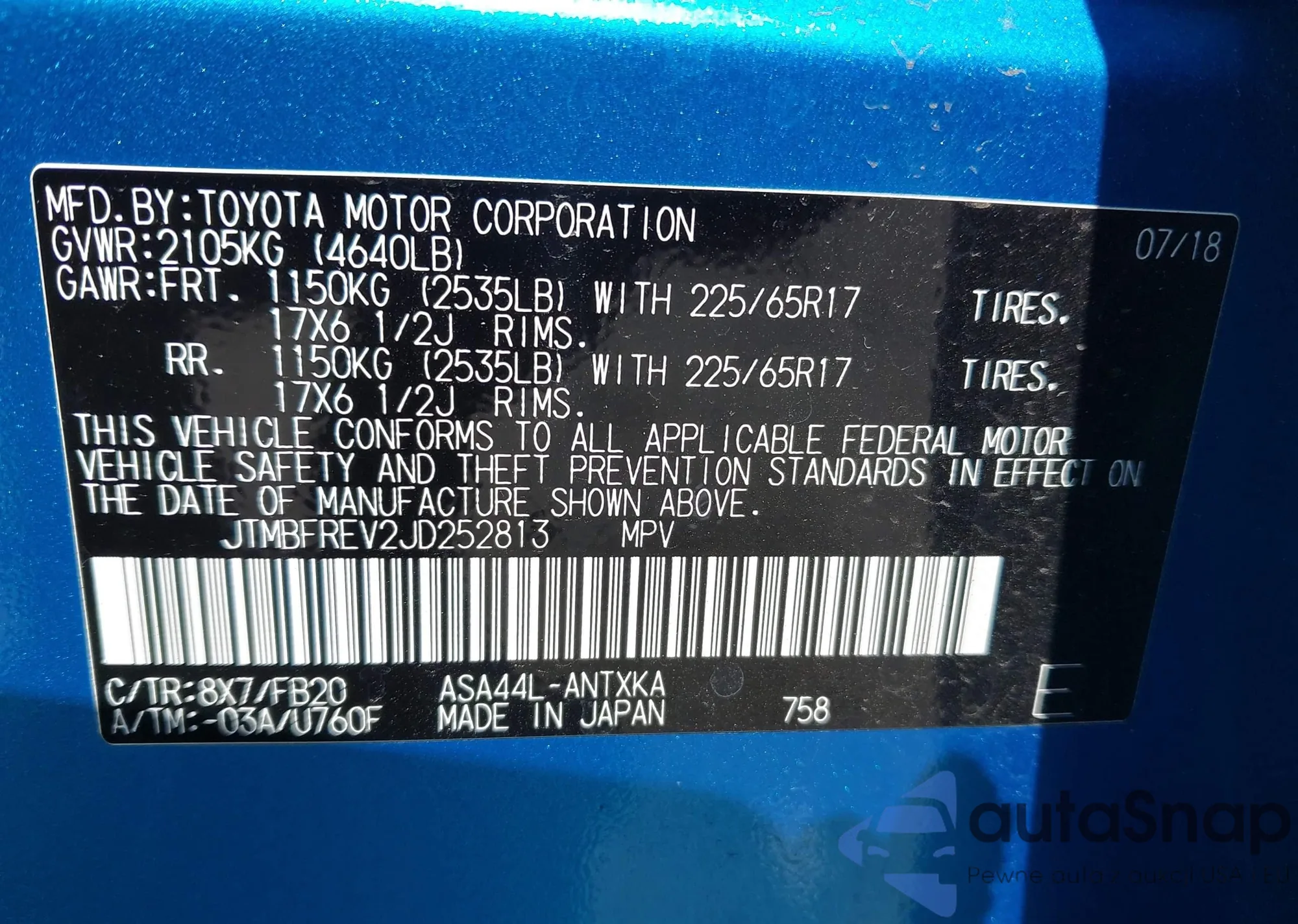LOT: 42997324 VIN: JT8BF28G215110362