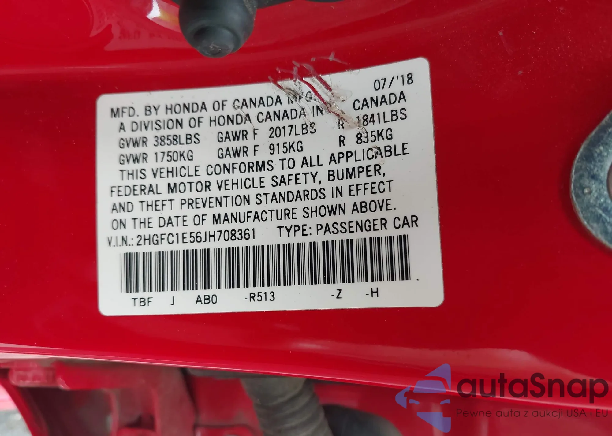 • VIN 2HGFC1E56JH708361