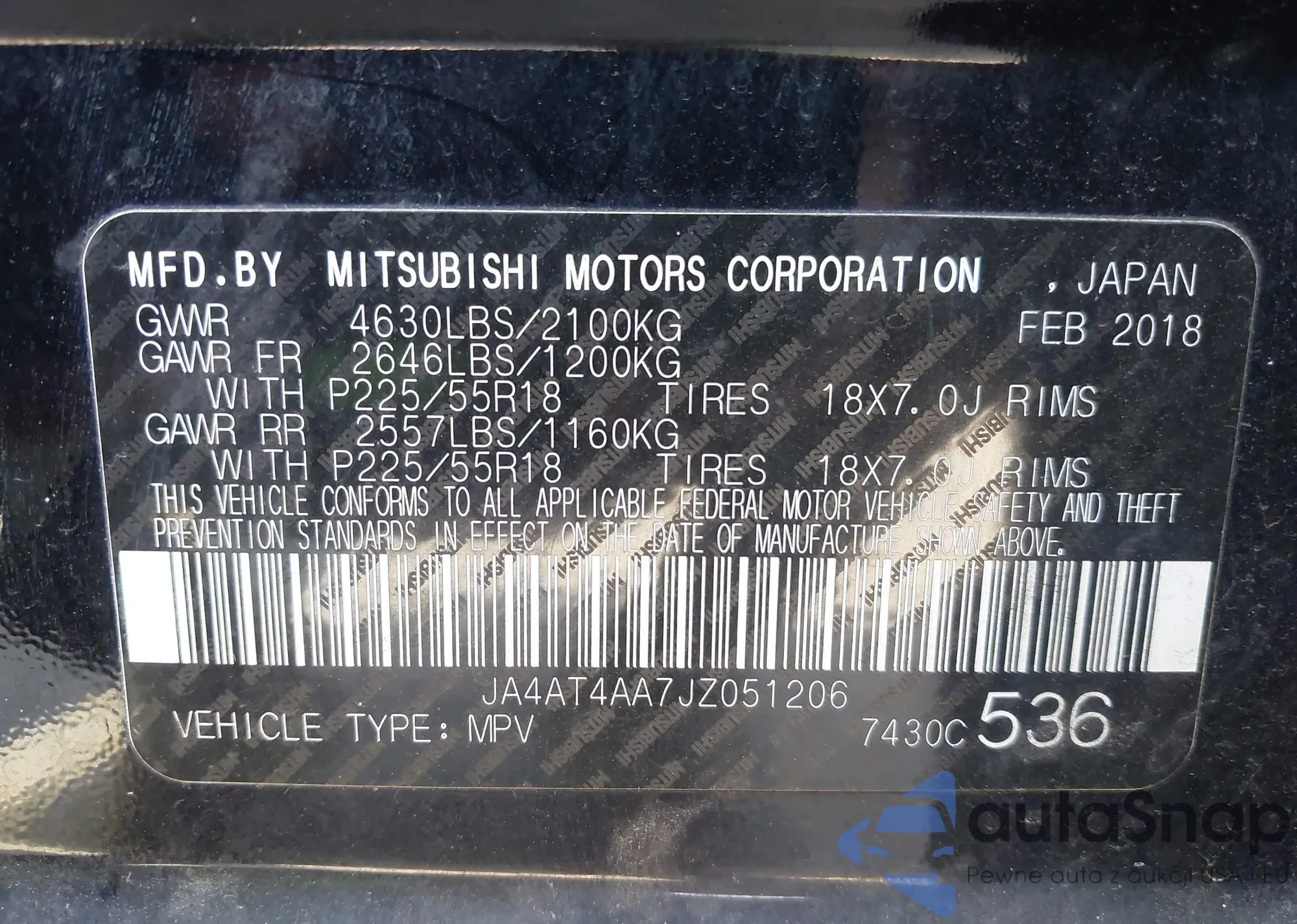 LOT: 42994936 VIN: JA4AT4AA7JZ051206