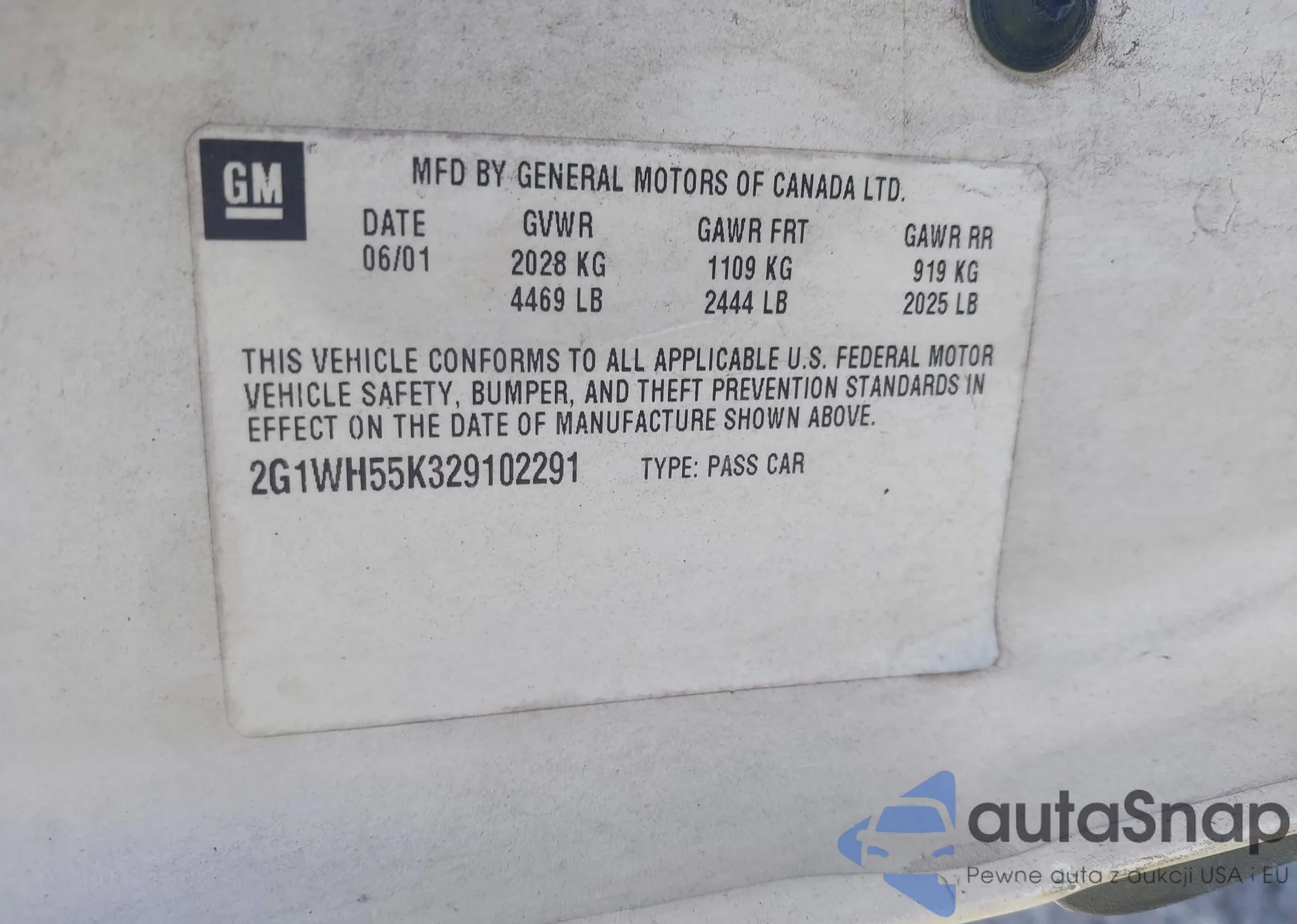 LOT: 43009176 VIN: 2G1WH55K329102291