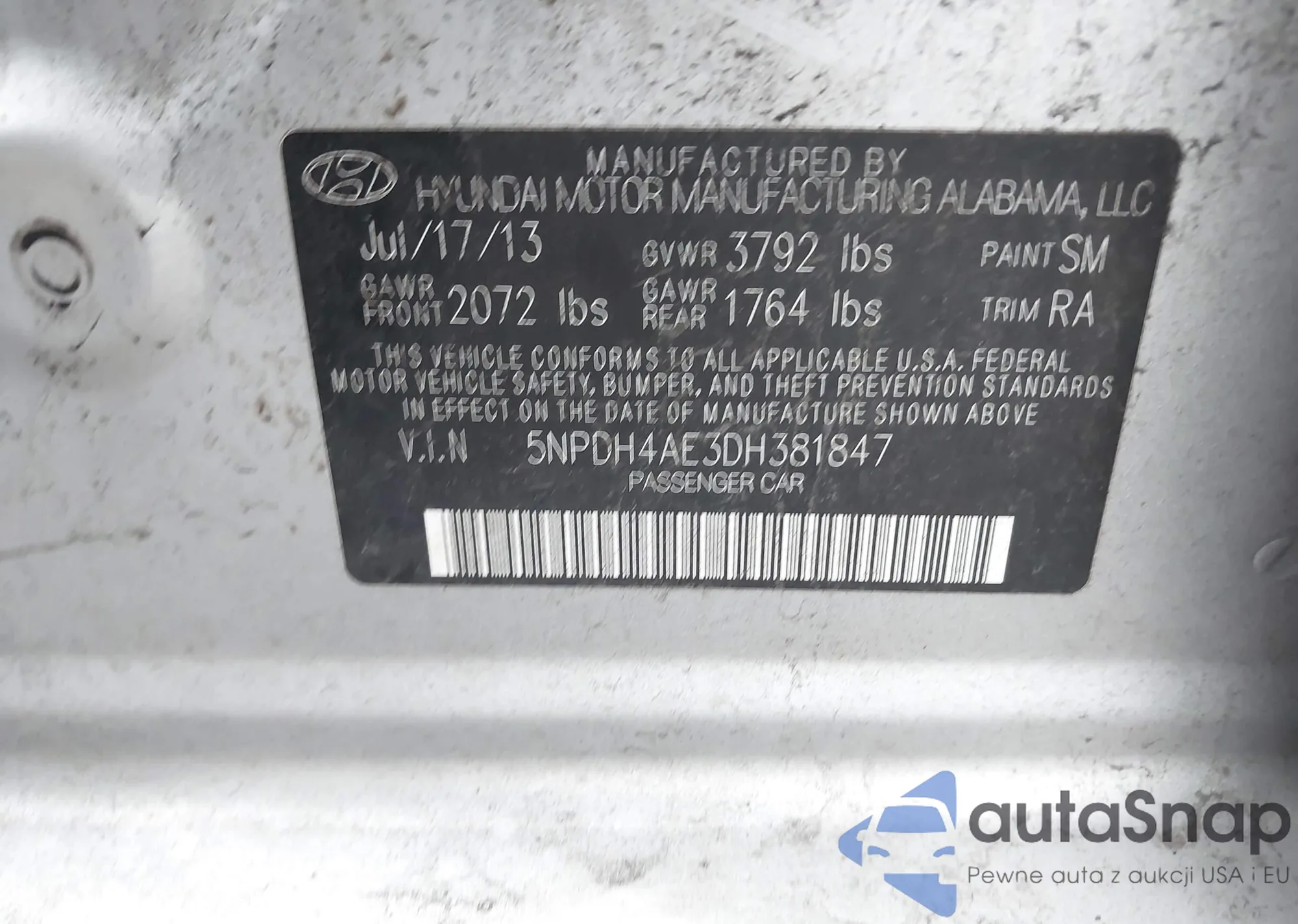 • VIN 5NPE34AF2FH080534
