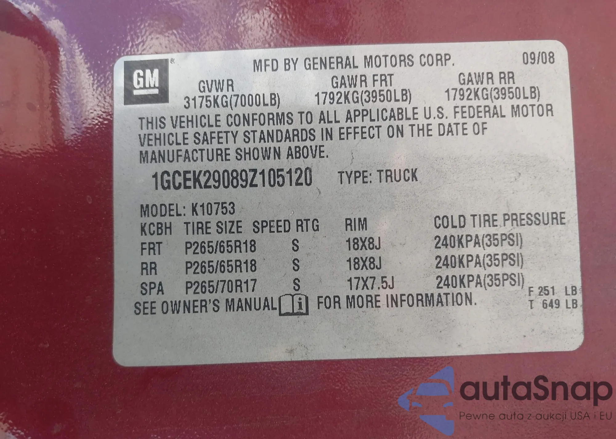 • VIN 1GCEK29089Z105120