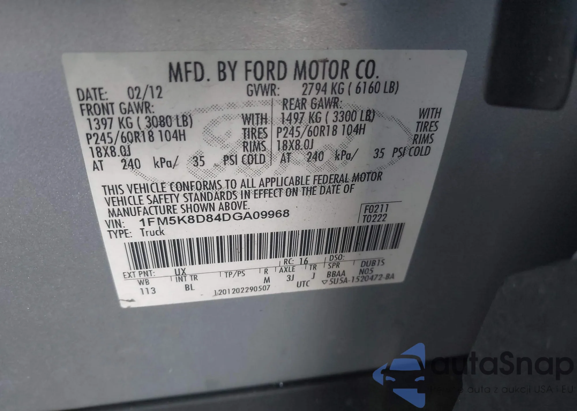 • VIN 1FM5K8D84DGA09968