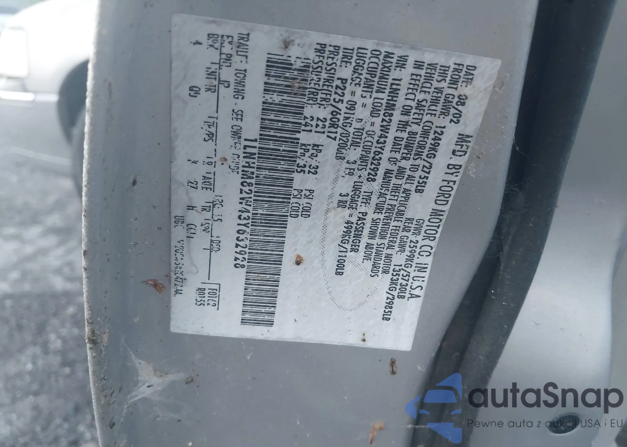 LOT: 43143878 VIN: 1LNHM82W43Y632928