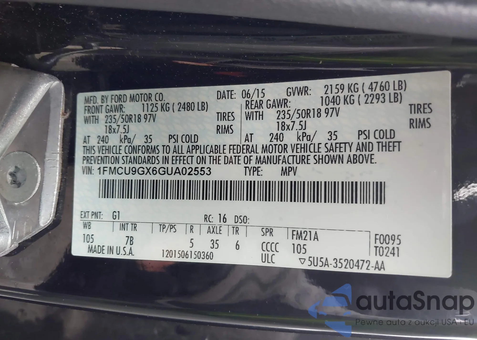 • VIN 1FMCU9GX6GUA02553