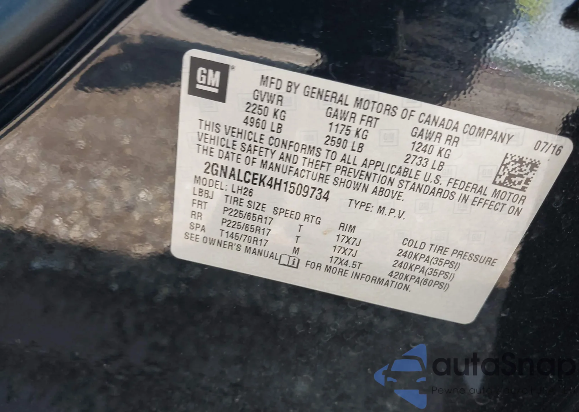 • VIN 2GNALCEK4H1509734