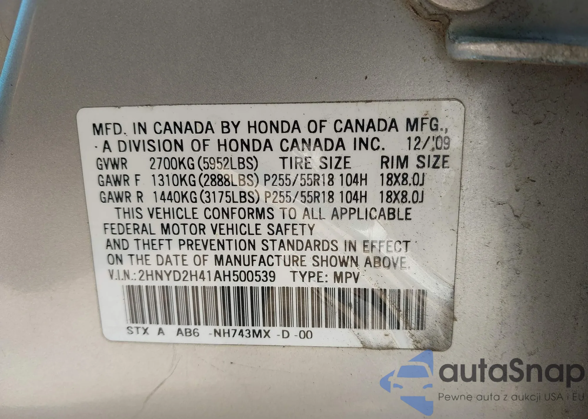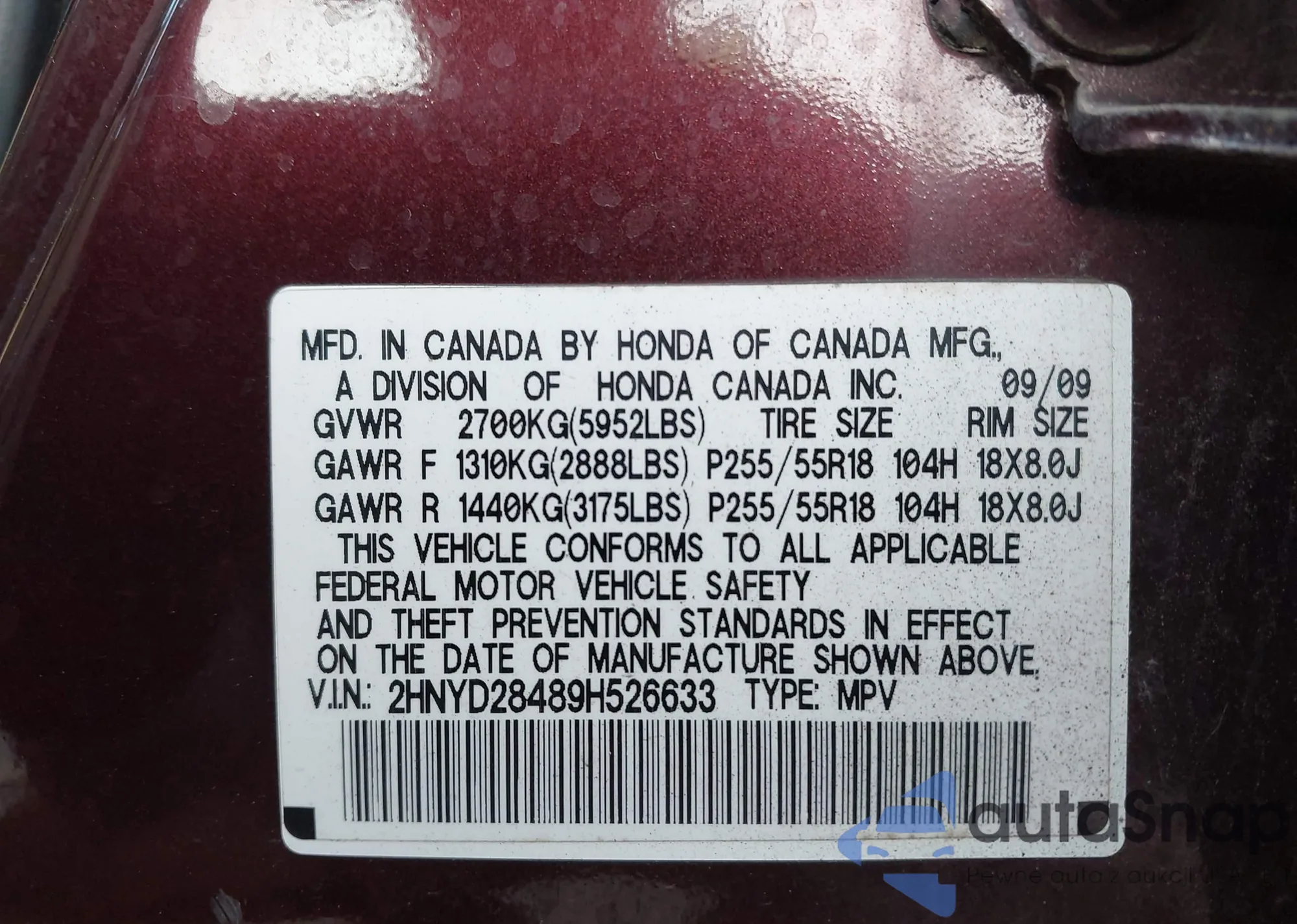 • VIN 2HGFB2F52DH539306