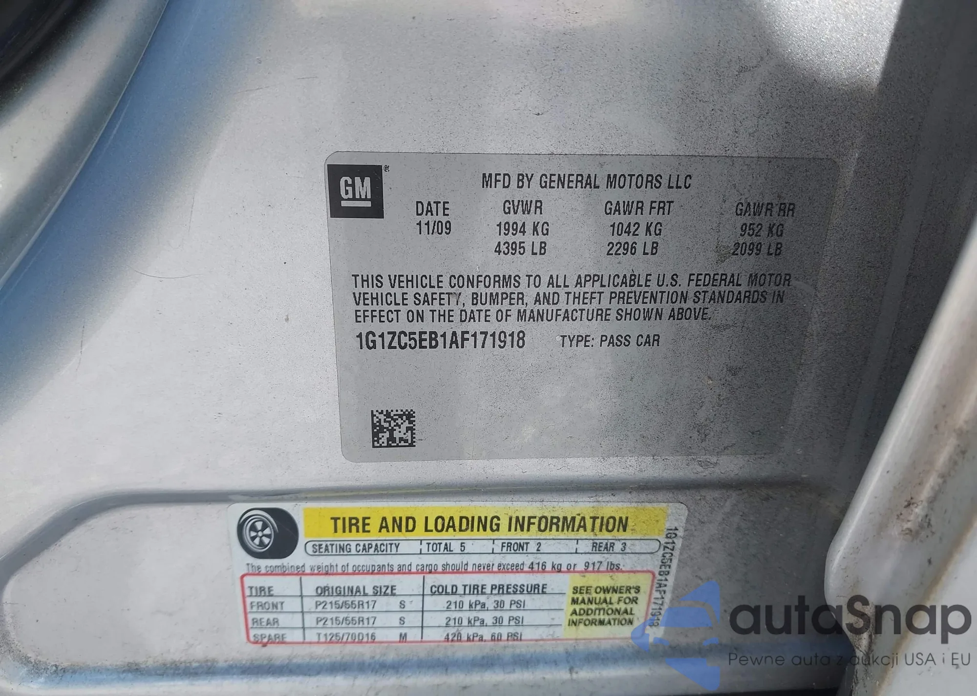 • VIN 1G1ZC5EB1AF171918
