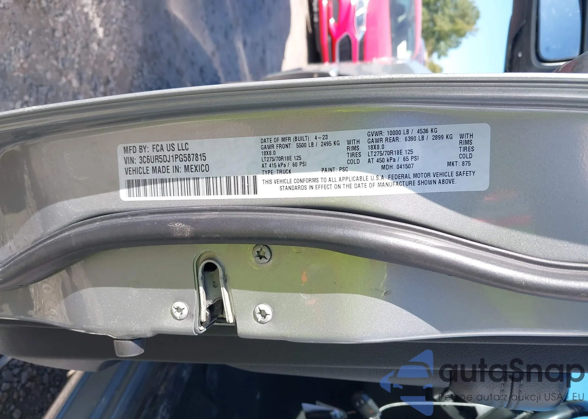 LOT: 43127308 VIN: 3C6UR5DJ1PG587815
