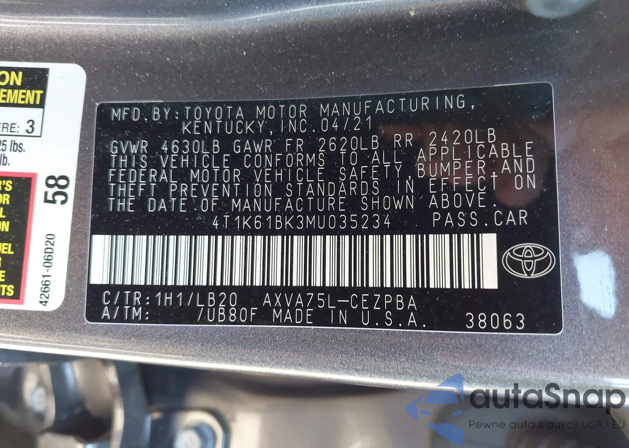 • VIN 4T1K61BK3MU035234