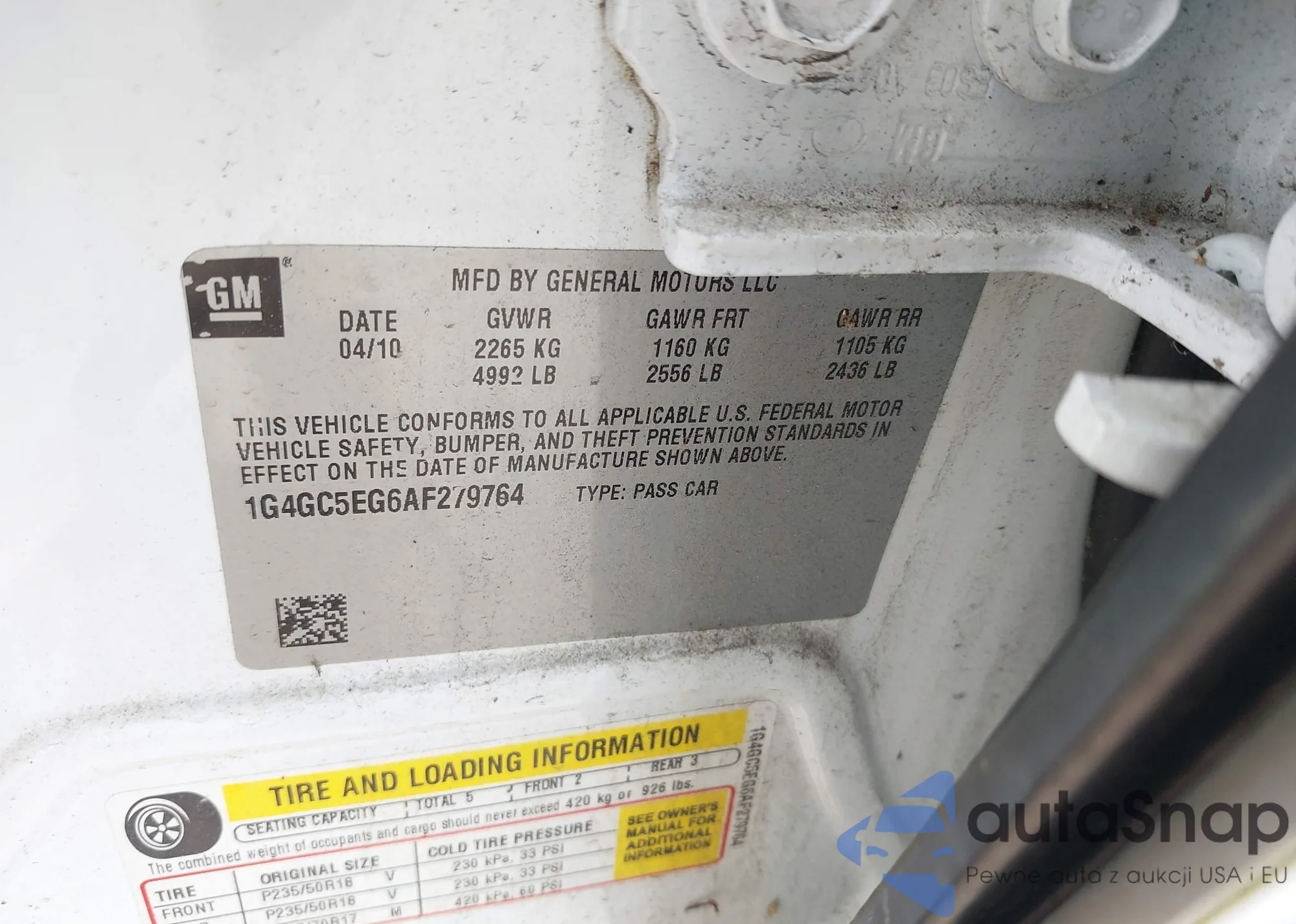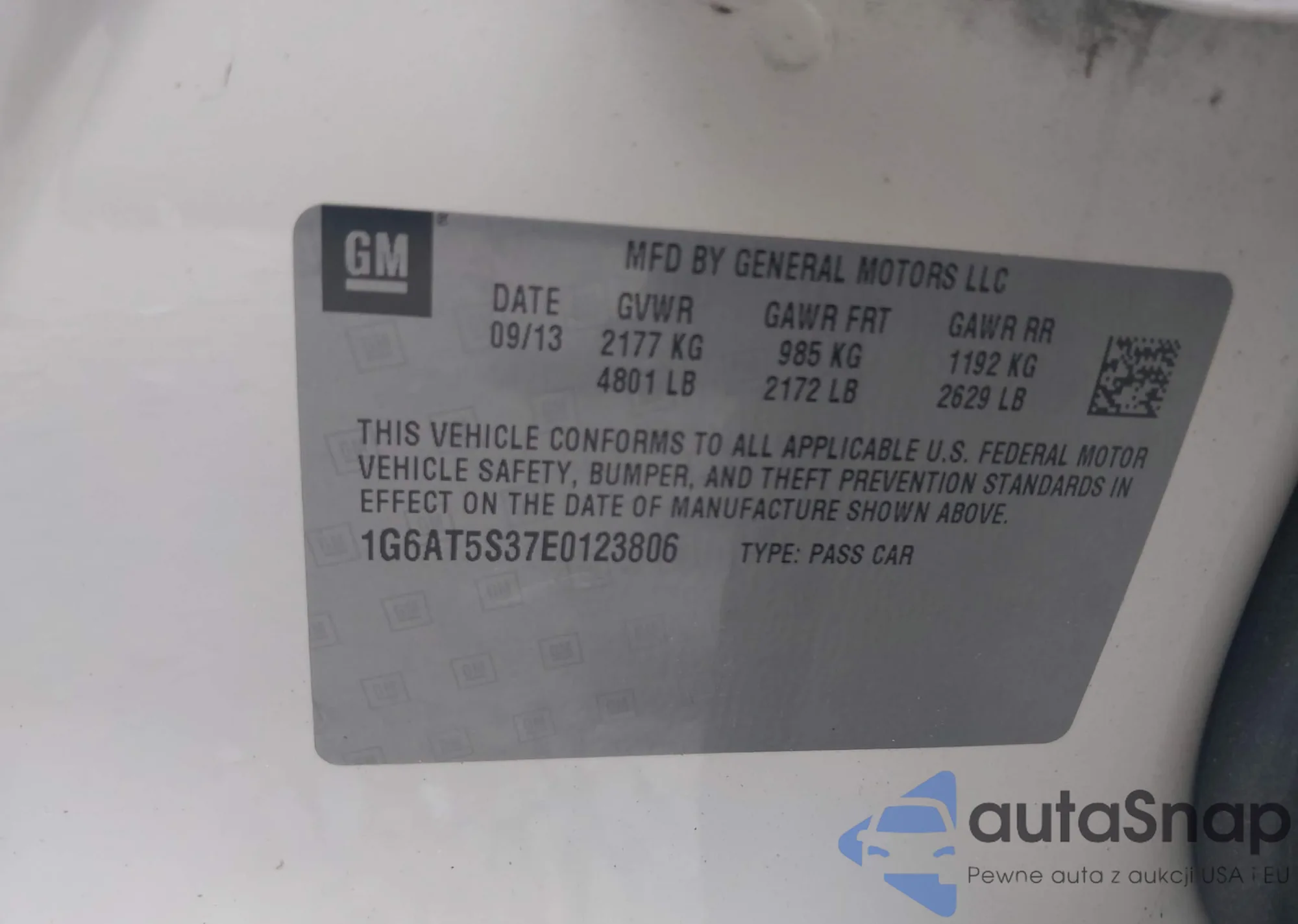 • VIN 1G6AT5S37E0123806