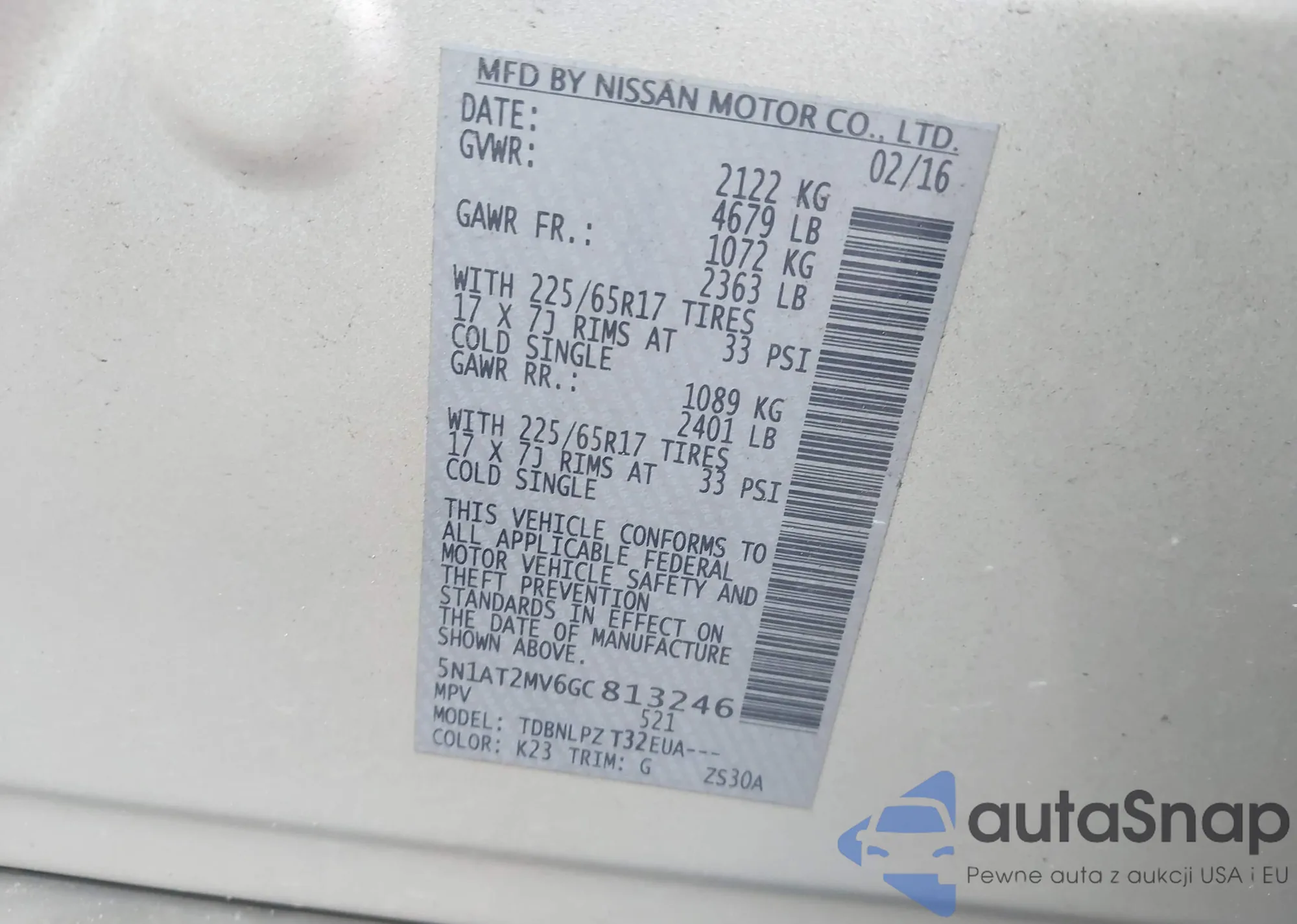 LOT: 42829902 VIN: 5N1AT2MV6GC813246