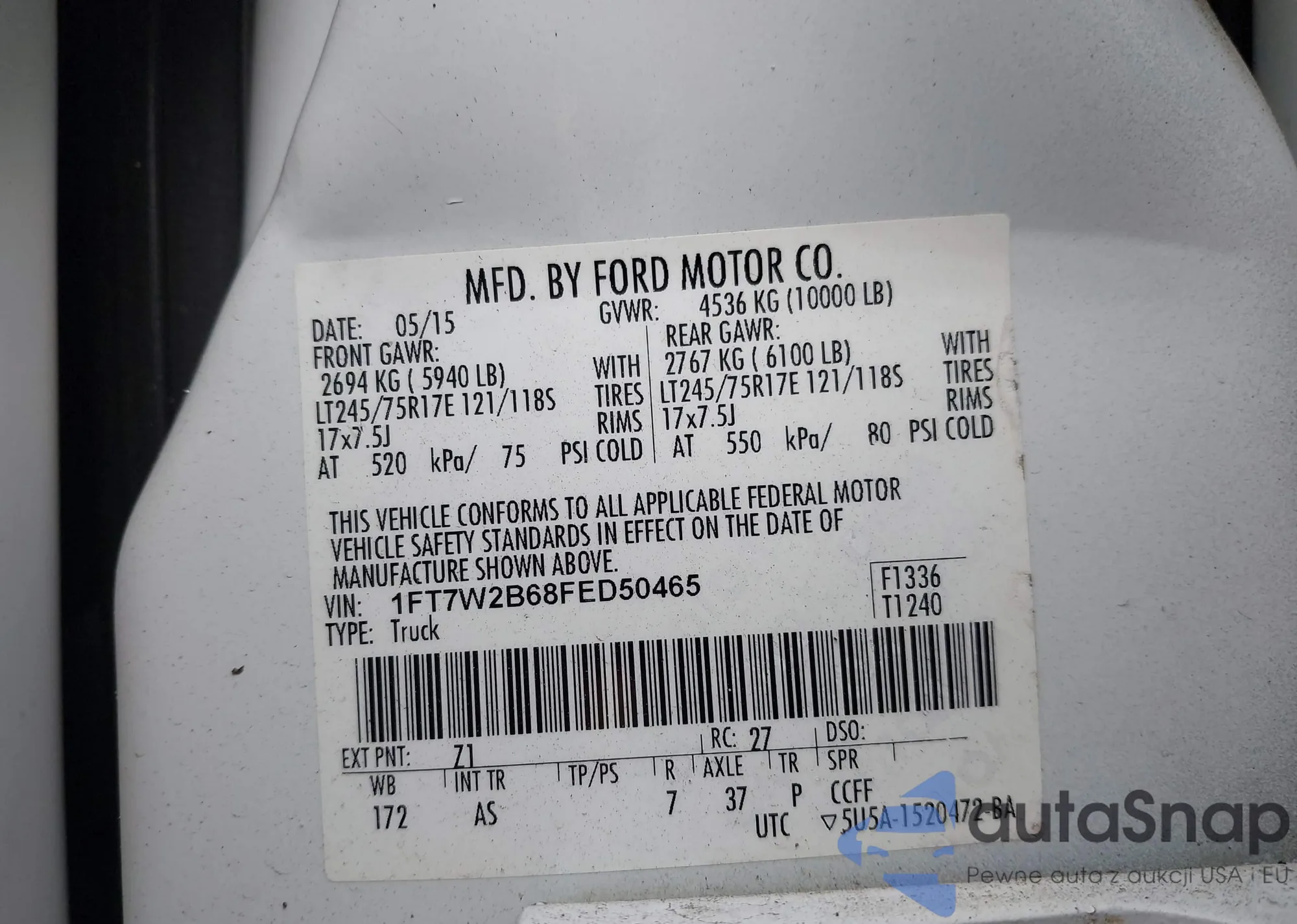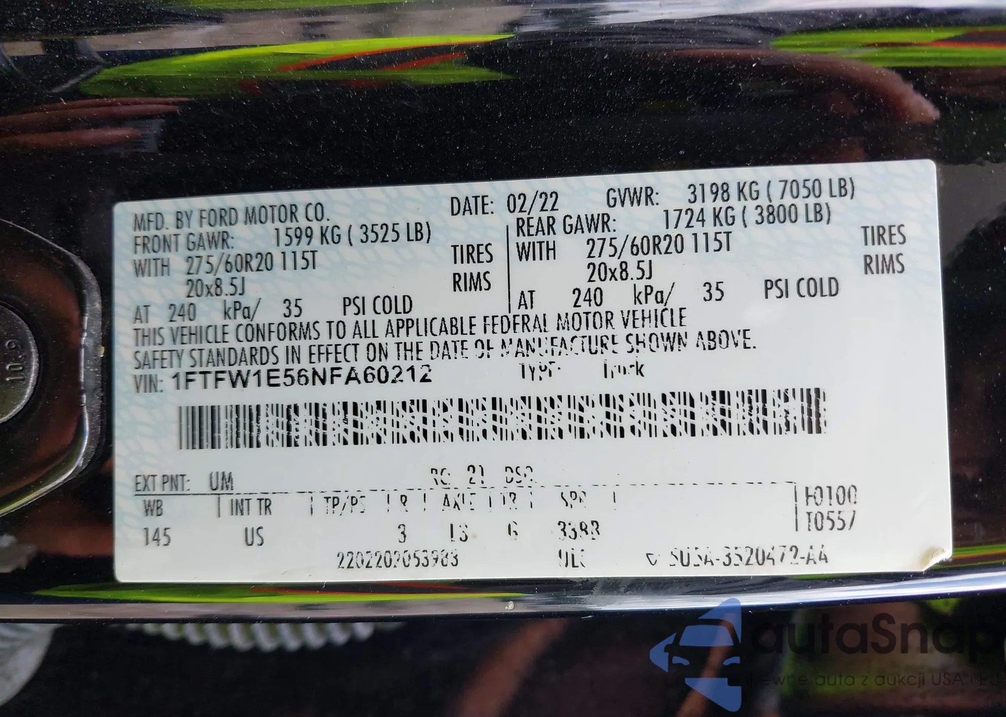 LOT: 42838568 VIN: 1FTFW1E56NFA60212