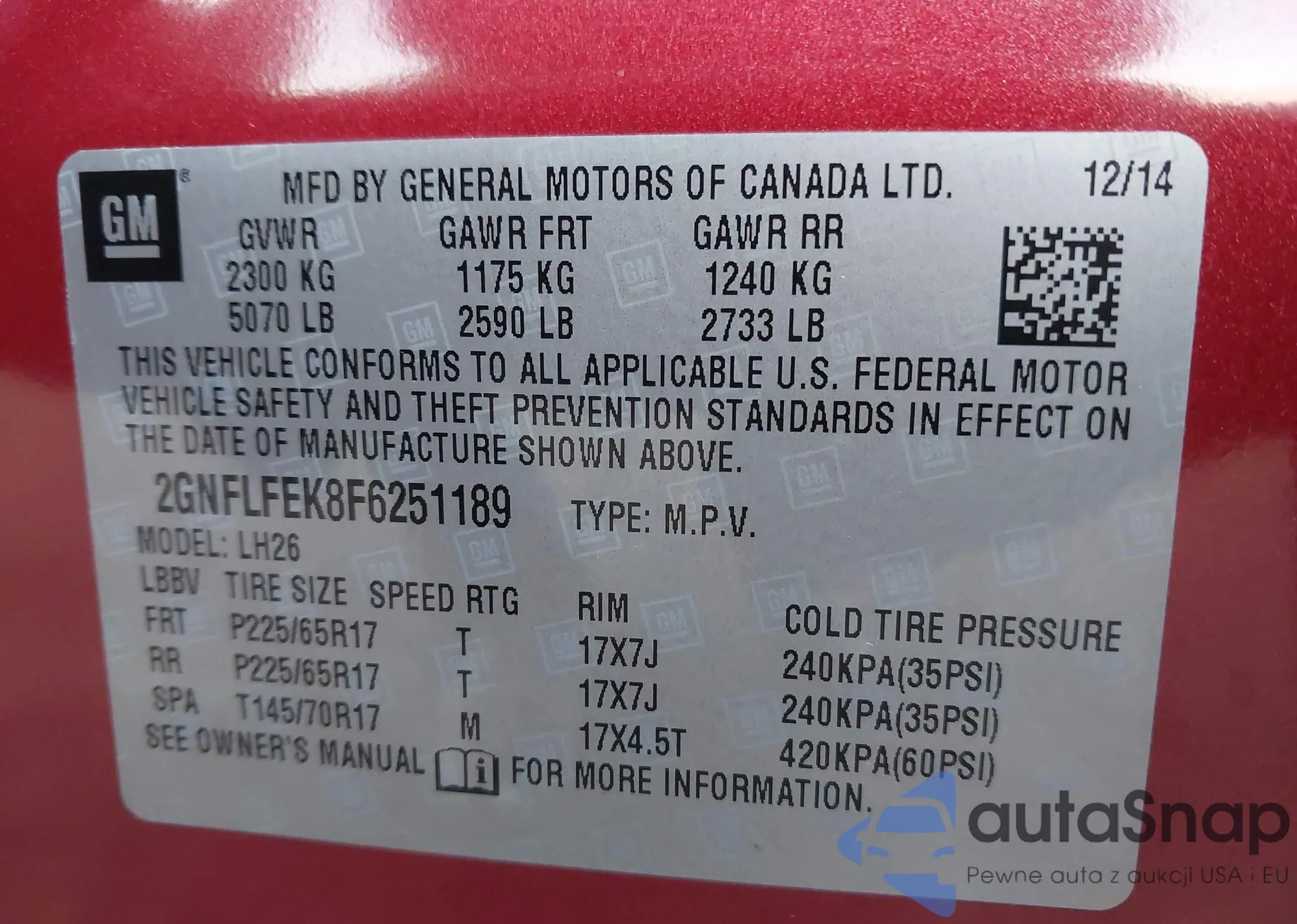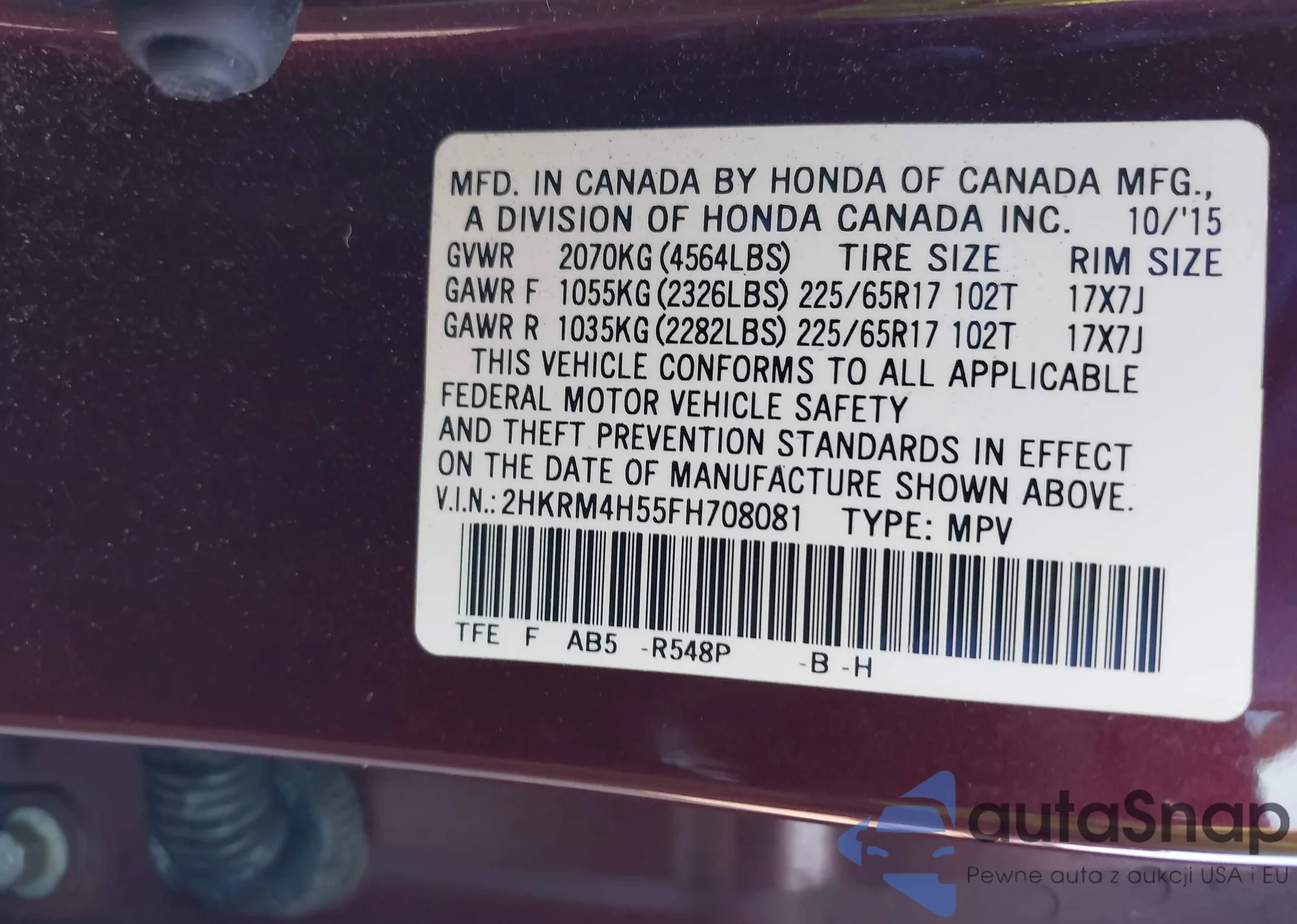 • VIN 2HKRM4H55FH708081