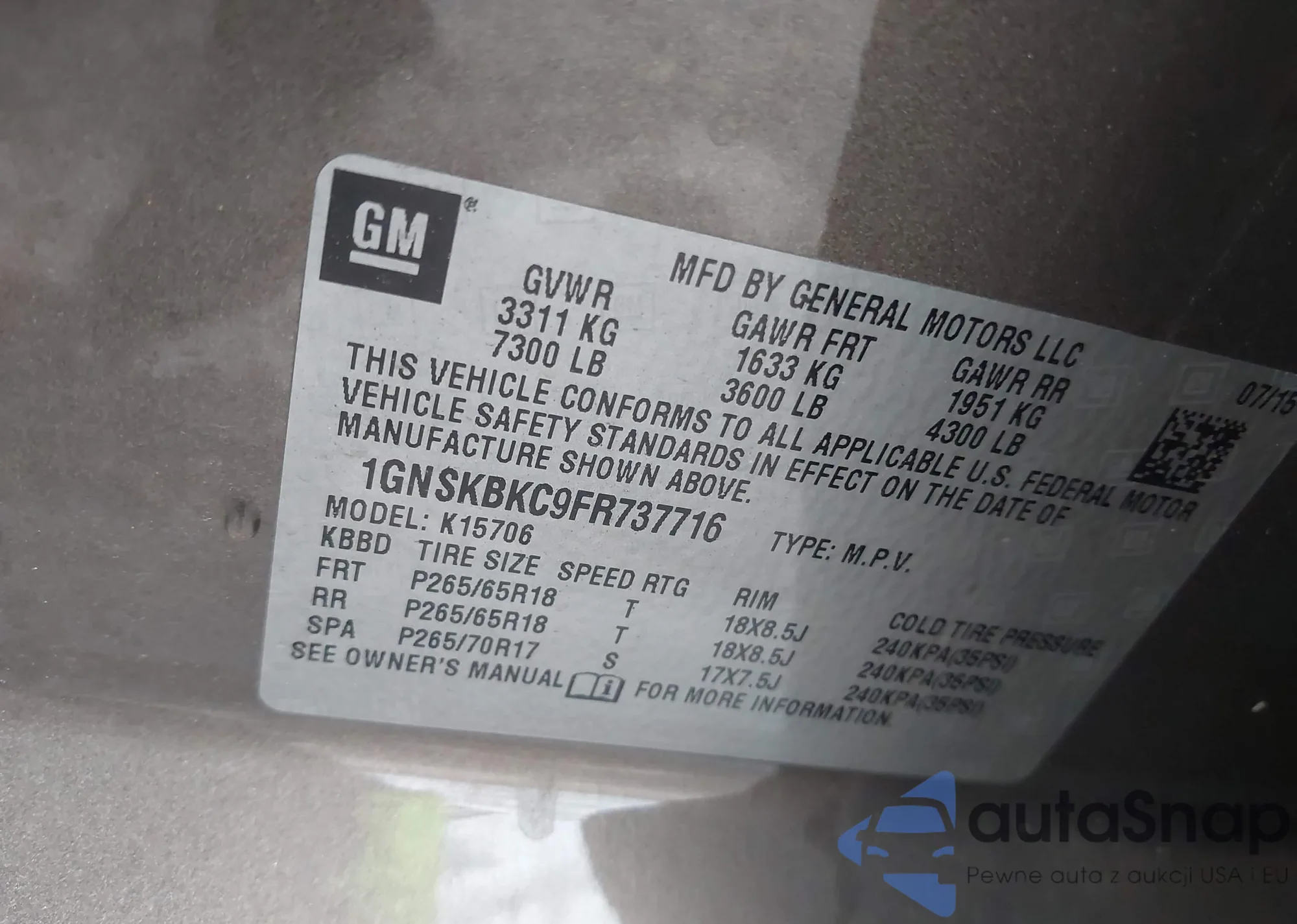LOT: 42937896 VIN: 2HKRM4H55FH708081