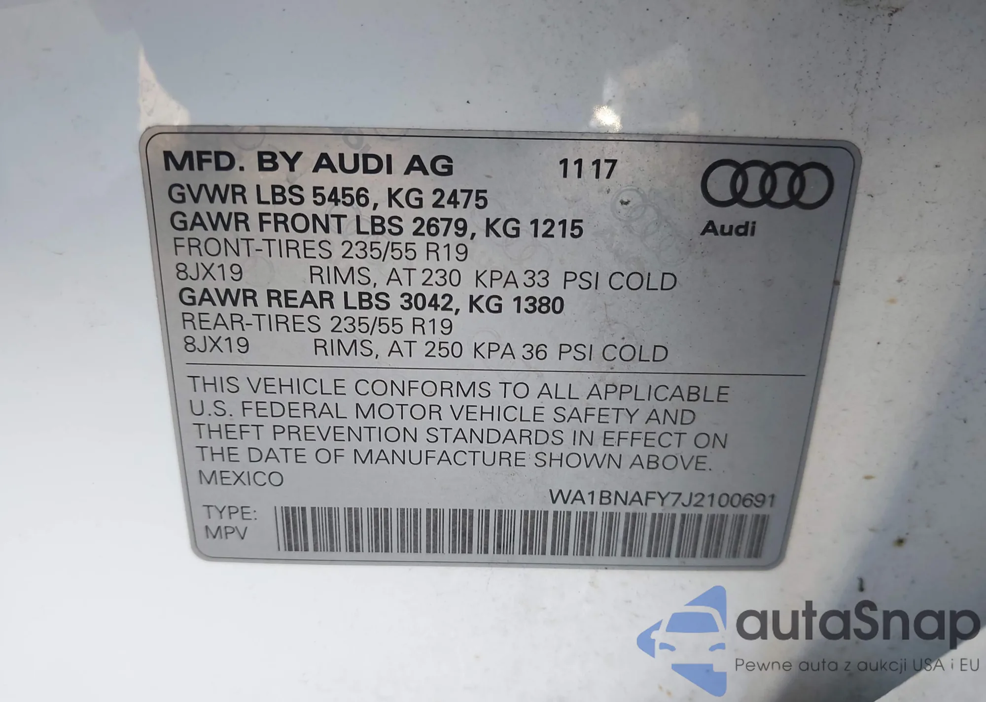 LOT: 43222514 VIN: WA1BNAFY7J2100691
