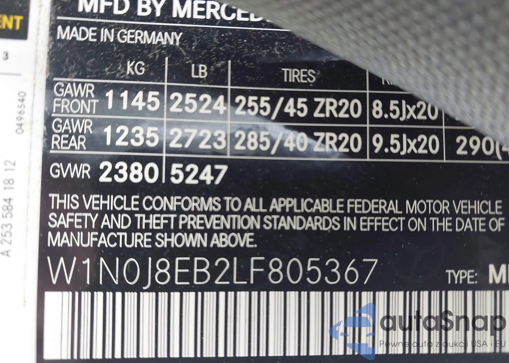 • VIN W1N0J8EB2LF805367