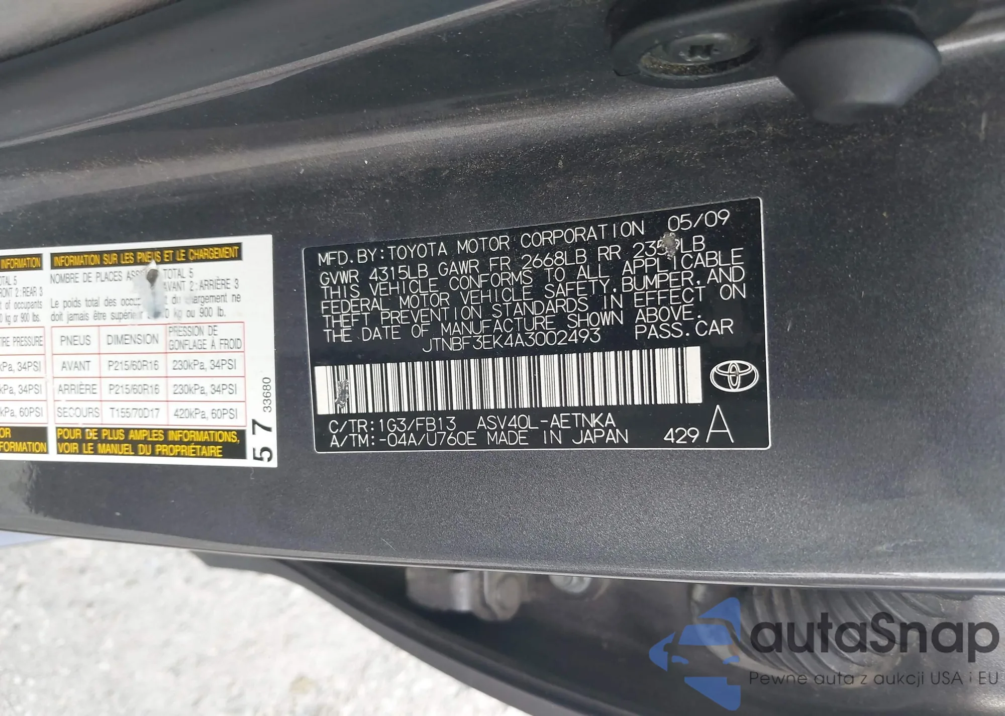 • VIN 2HGFA1F52AH573903