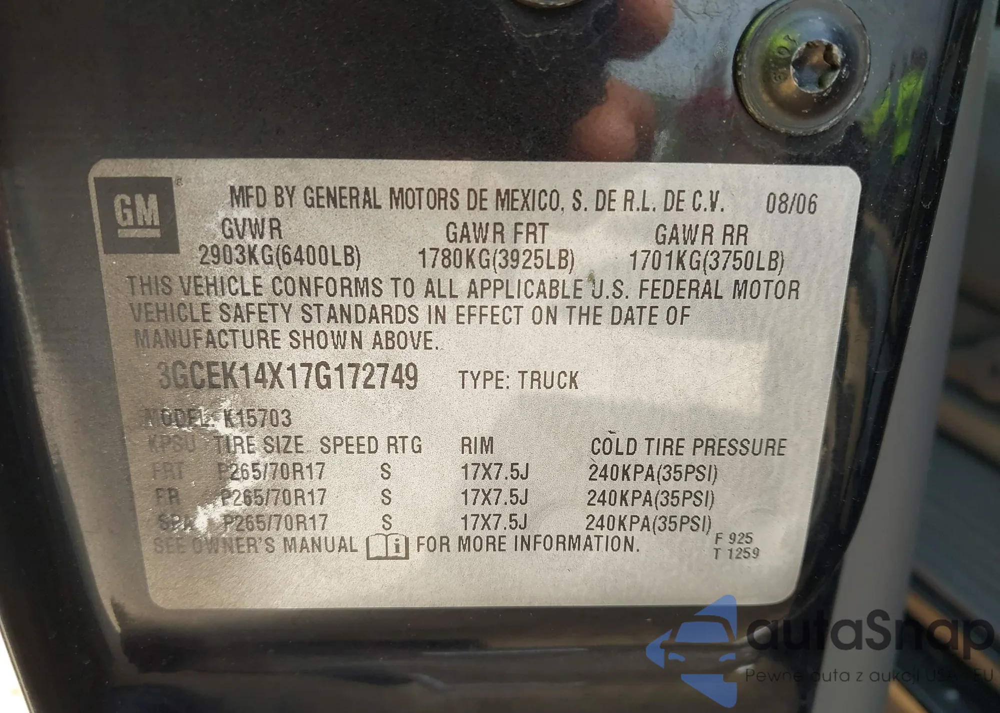 • VIN KL7CJPSBXJB654914